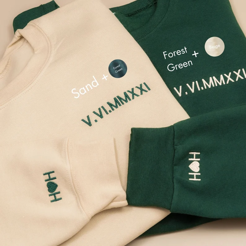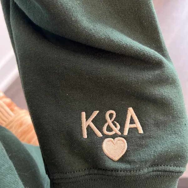 Embroidered Roman Numerals Sweatshirt | Anniversary Date Couple Hoodie | Old English Initials with Heart on Sleeve | Valentines Day Gift