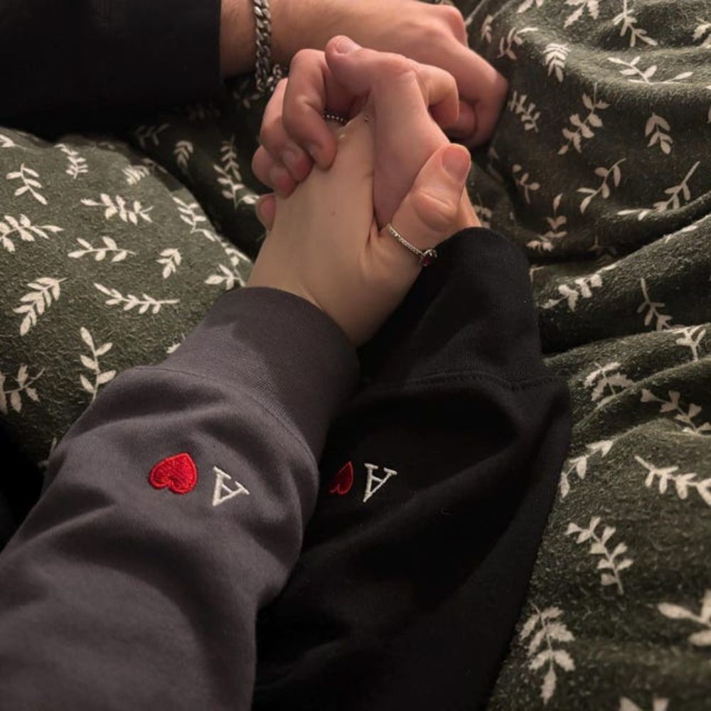 Embroidered Roman Numerals Sweatshirt | Anniversary Date Couple Hoodie | Old English Initials with Heart on Sleeve | Valentines Day Gift