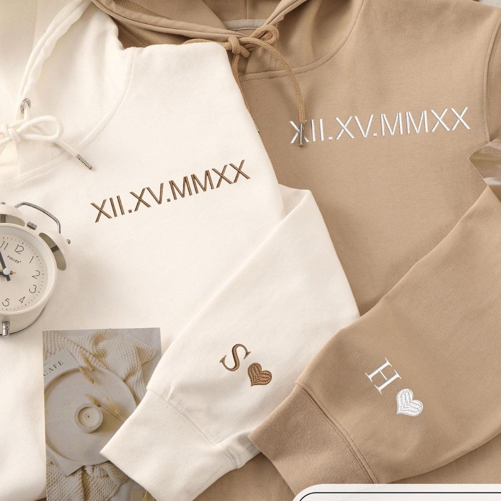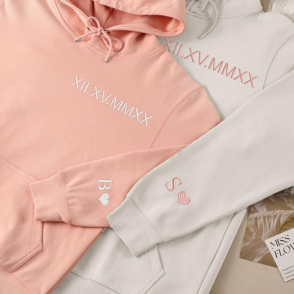 Custom Embroidered Roman Numeral Hoodie • perfect gift for couple