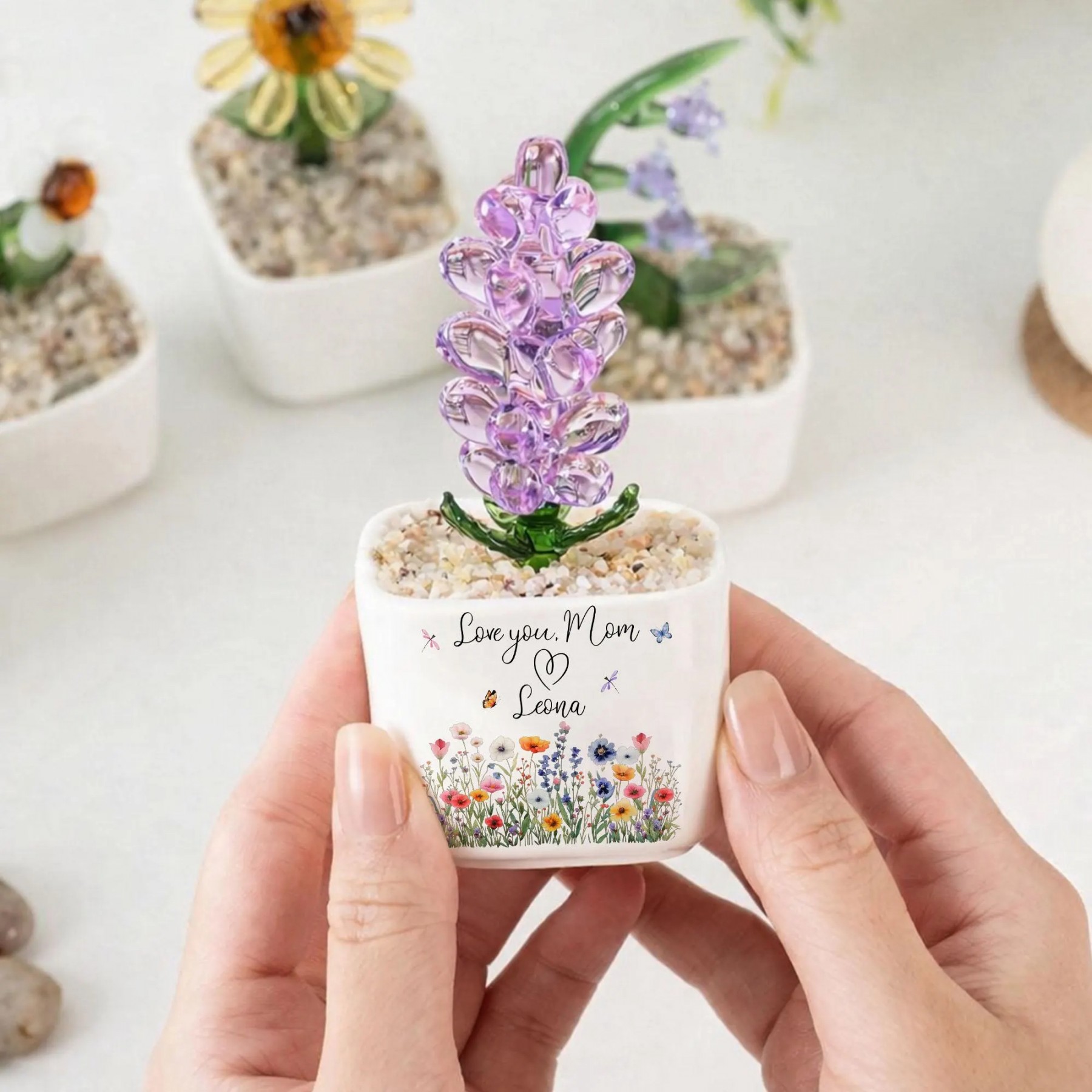 Personalized Glass Tulip Gift for Mom – Custom Forever Flower Planter, Handmade Glass Flower Decor, Mother’s Day Gift, Birthday Gift for Mom Give a gift that never fades with this Personalized Glass Tulip Forever Flower Planter.