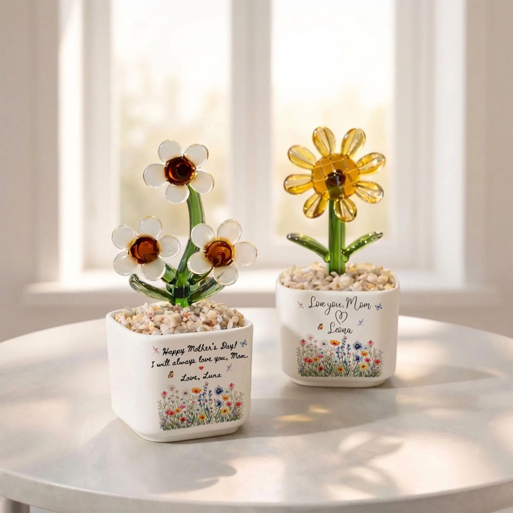 Whether placed on a windowsill, desk, or shelf, this handmade glass flower decor adds warmth, color, and heartfelt meaning to any space.