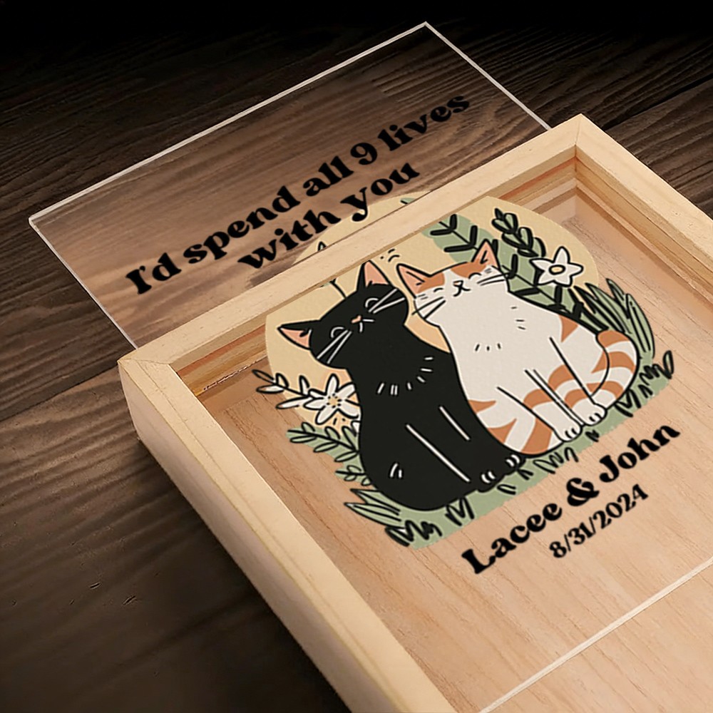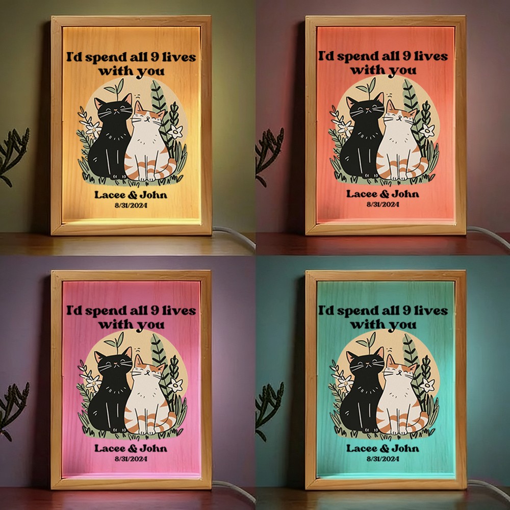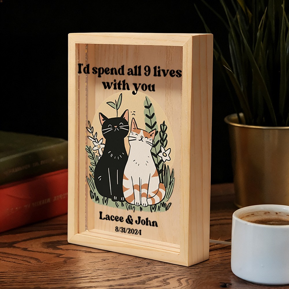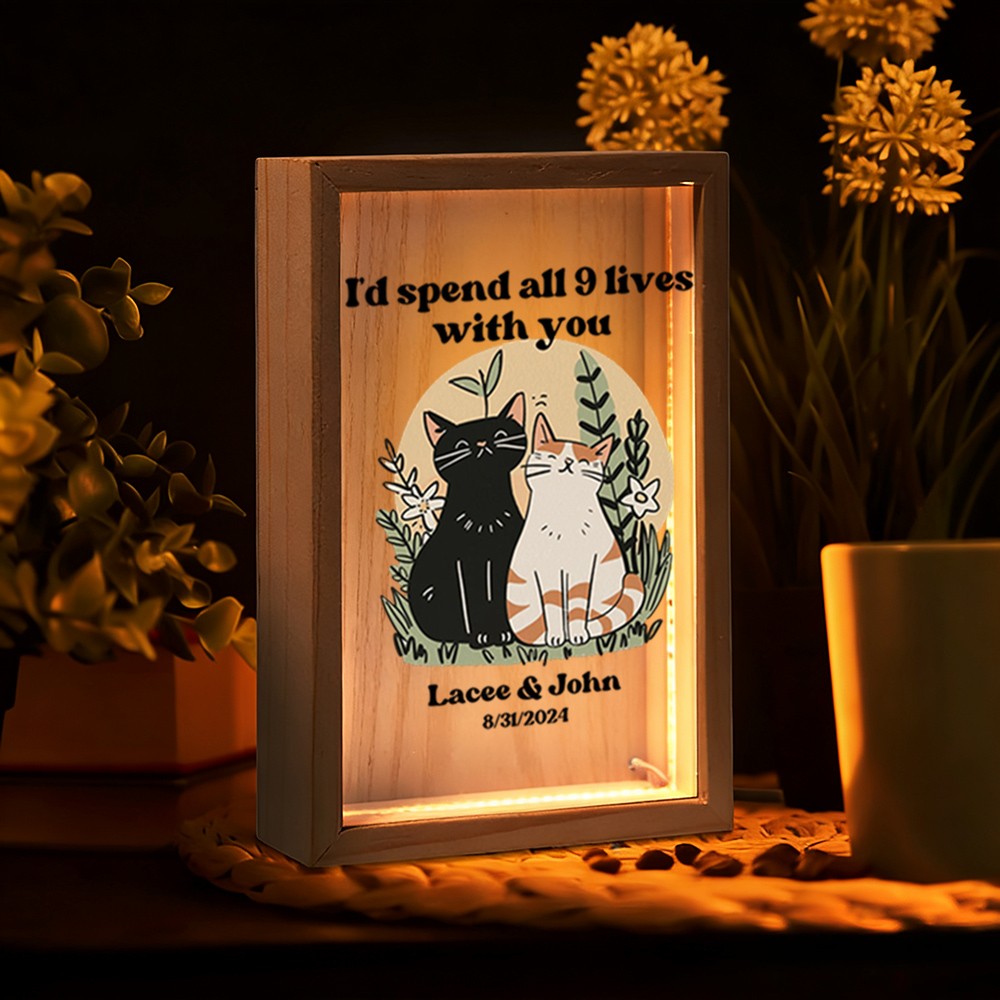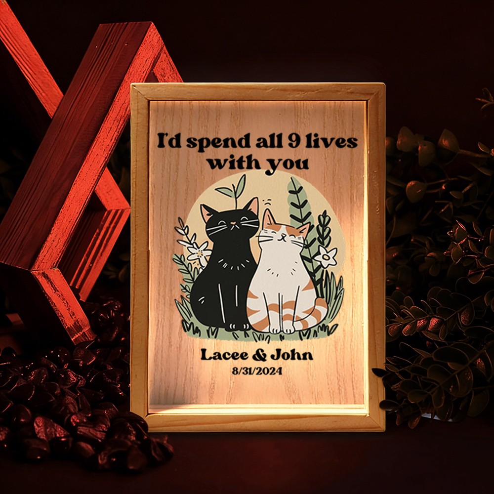 Custom I'd Spend All Nine Lives with You Illustration Frame Light Box for Couple