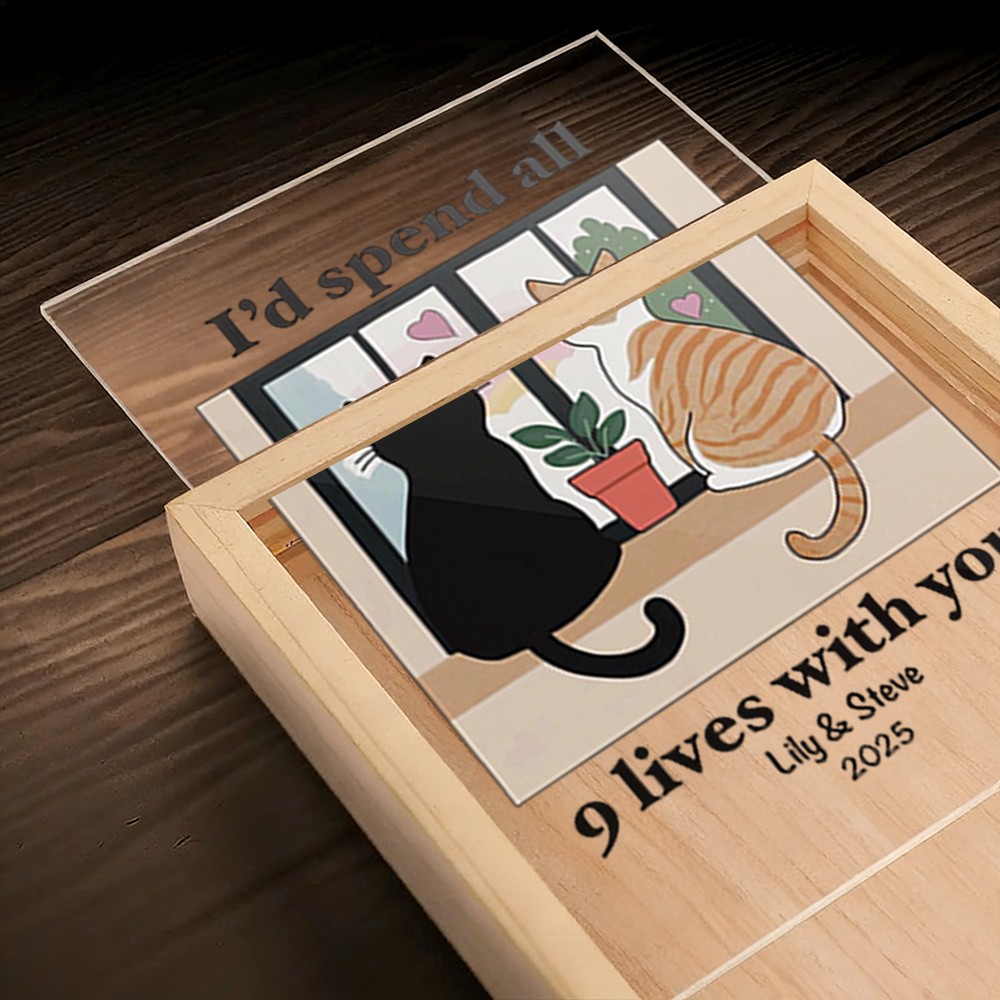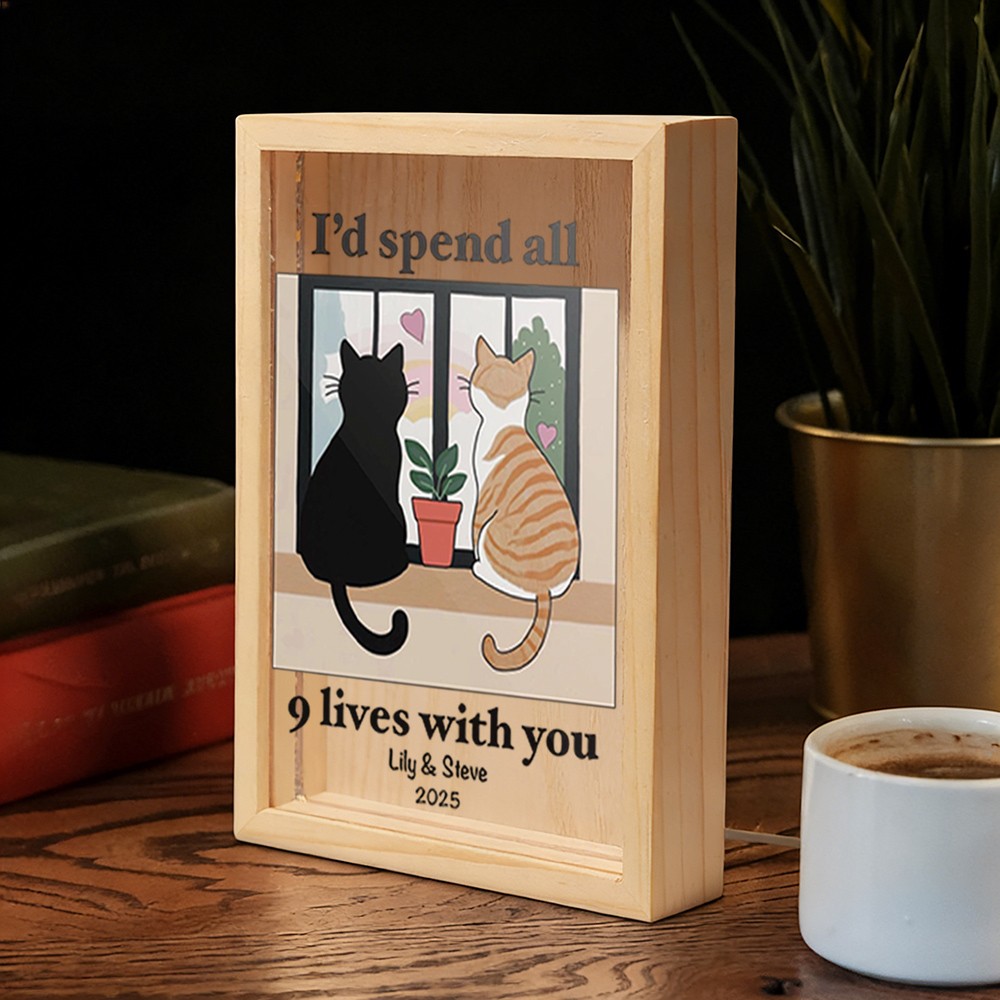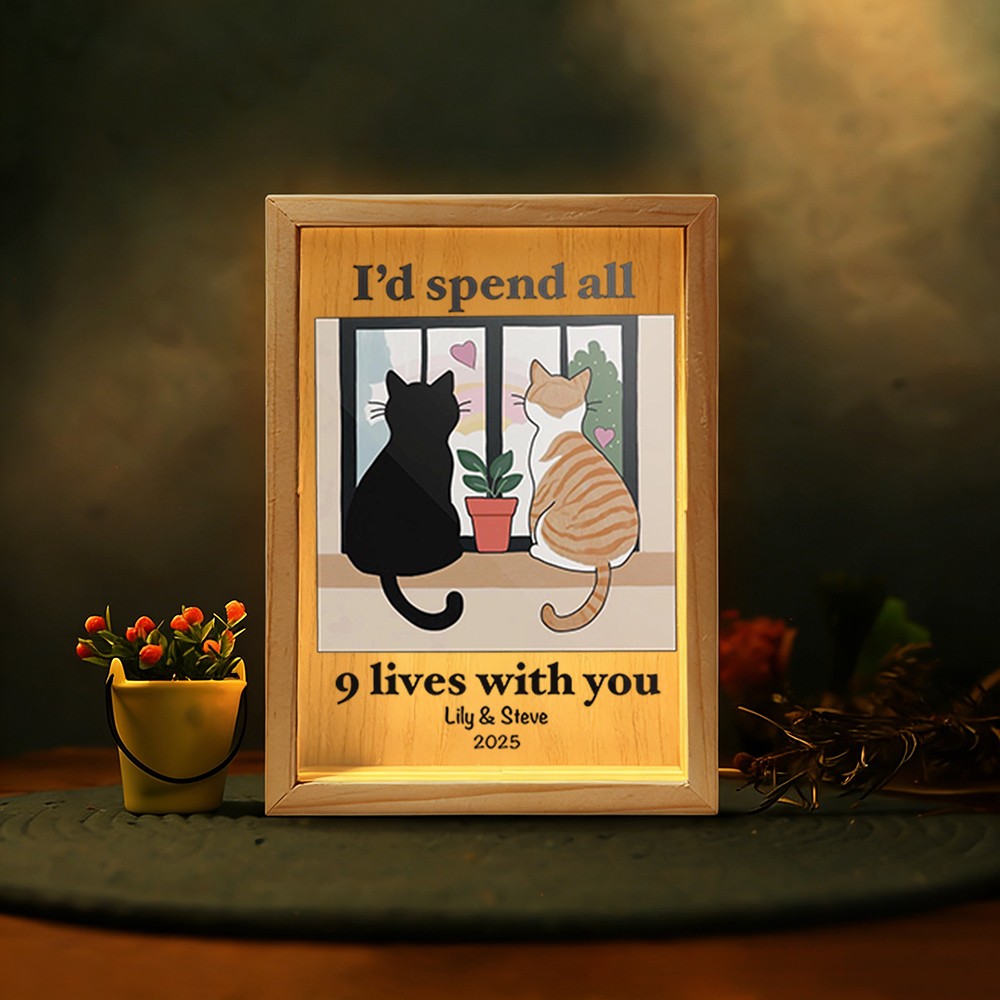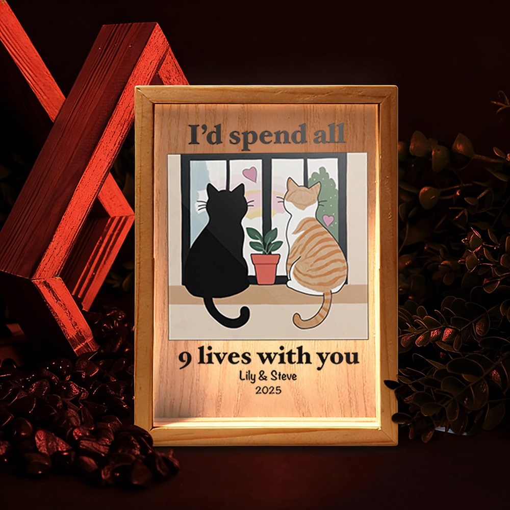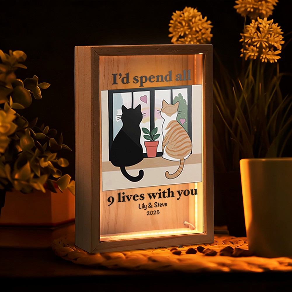 Custom I'd Spend All Nine Lives with You Illustration Frame Light Box for Couple