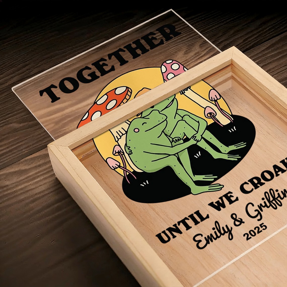 The Custom Together Until We Croak Illustration Frame Light Box for Couple turns your personalized artwork into a warm and eye catching display. Made with a clear acrylic panel and a natural wood base, it adds a modern touch to bedrooms, desks, and living spaces. The print appears on one side with a soft mirrored reflection on the back, creating a clean and layered visual effect.