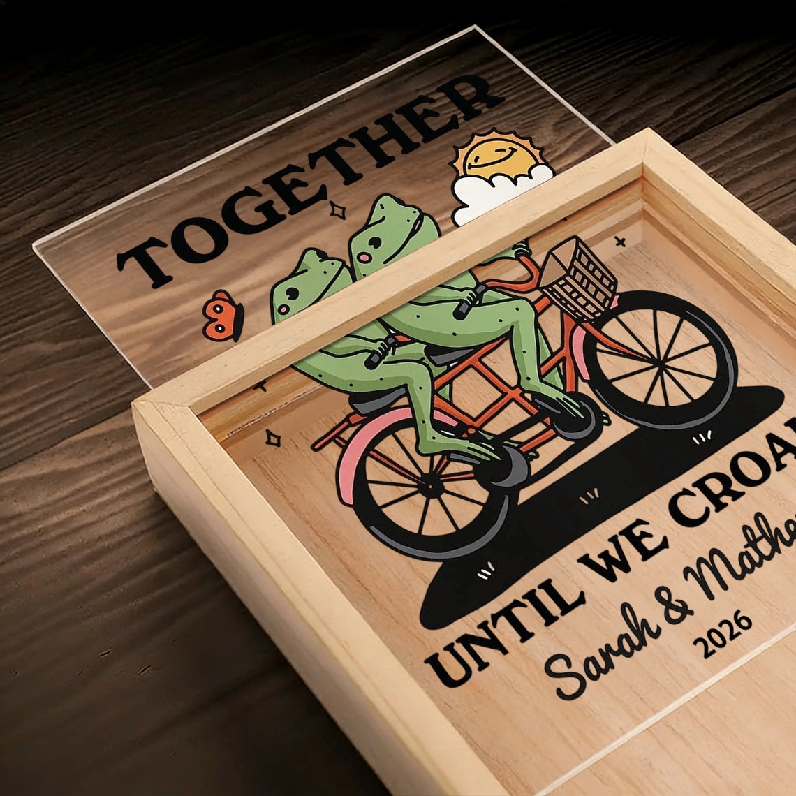 The Custom Together Until We Croak Illustration Frame Light Box for Couple turns your personalized artwork into a warm and eye catching display. Made with a clear acrylic panel and a natural wood base, it adds a modern touch to bedrooms, desks, and living spaces. The print appears on one side with a soft mirrored reflection on the back, creating a clean and layered visual effect.