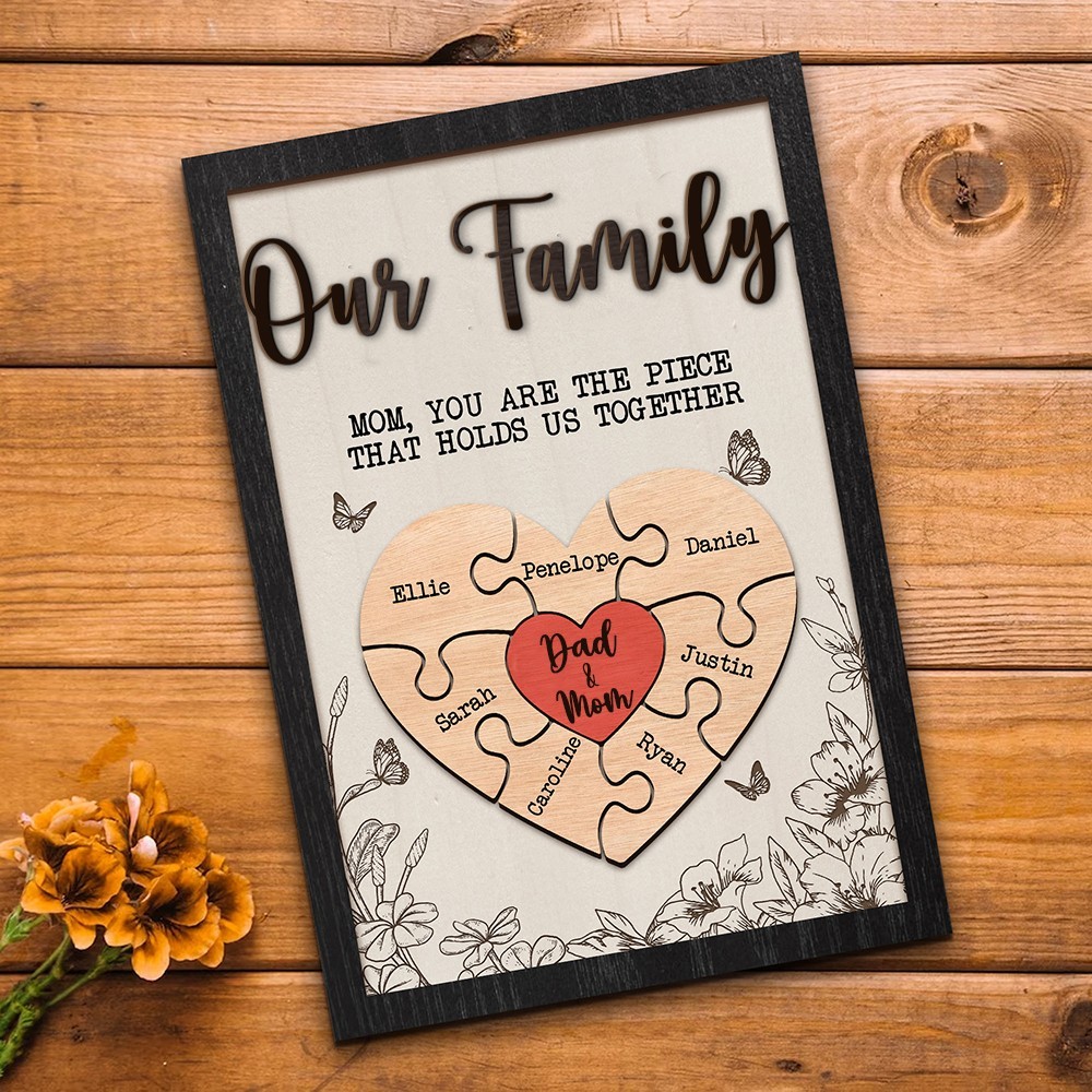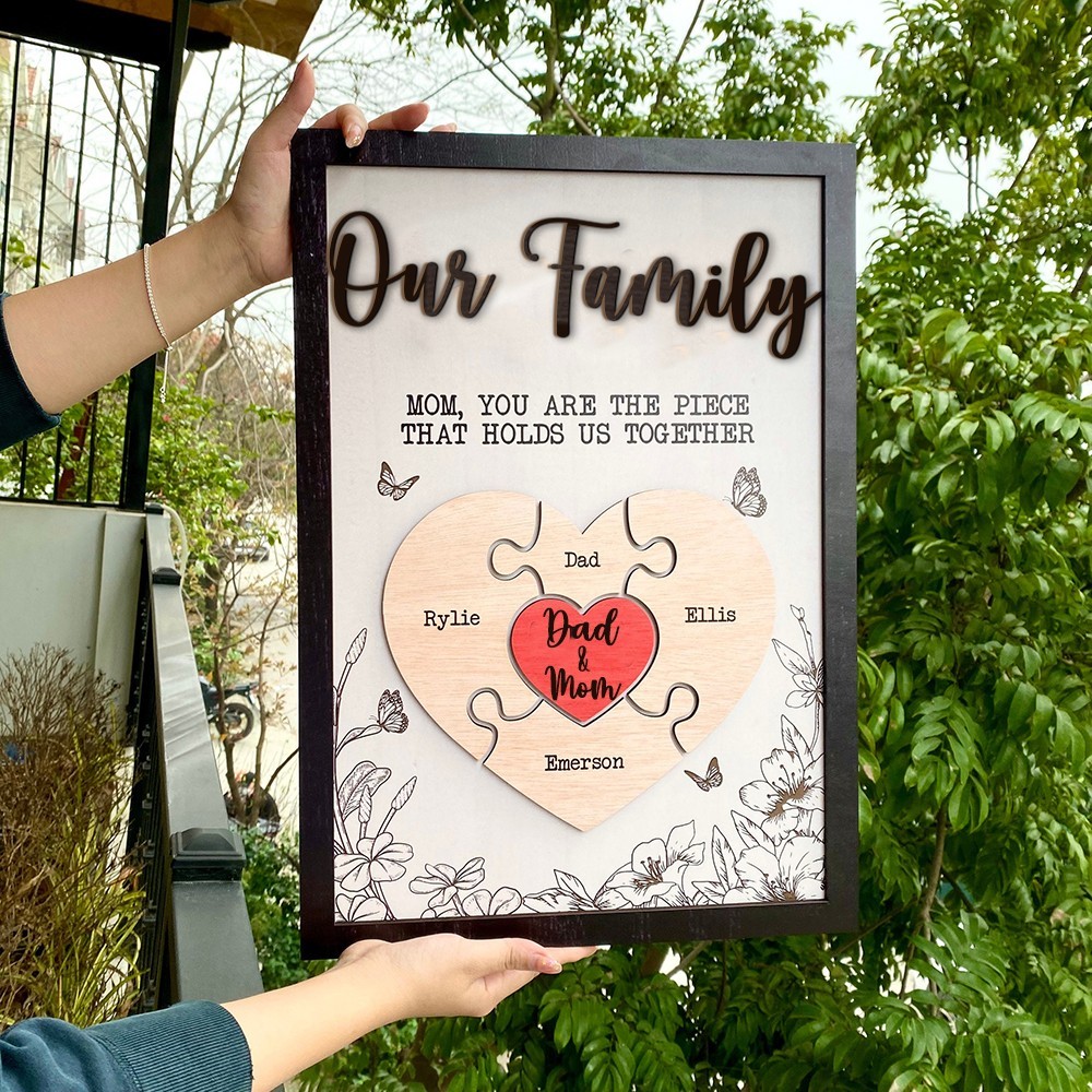 Custom You are the Piece that holds us together Wooden Puzzle Sign