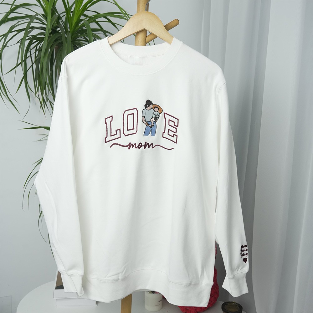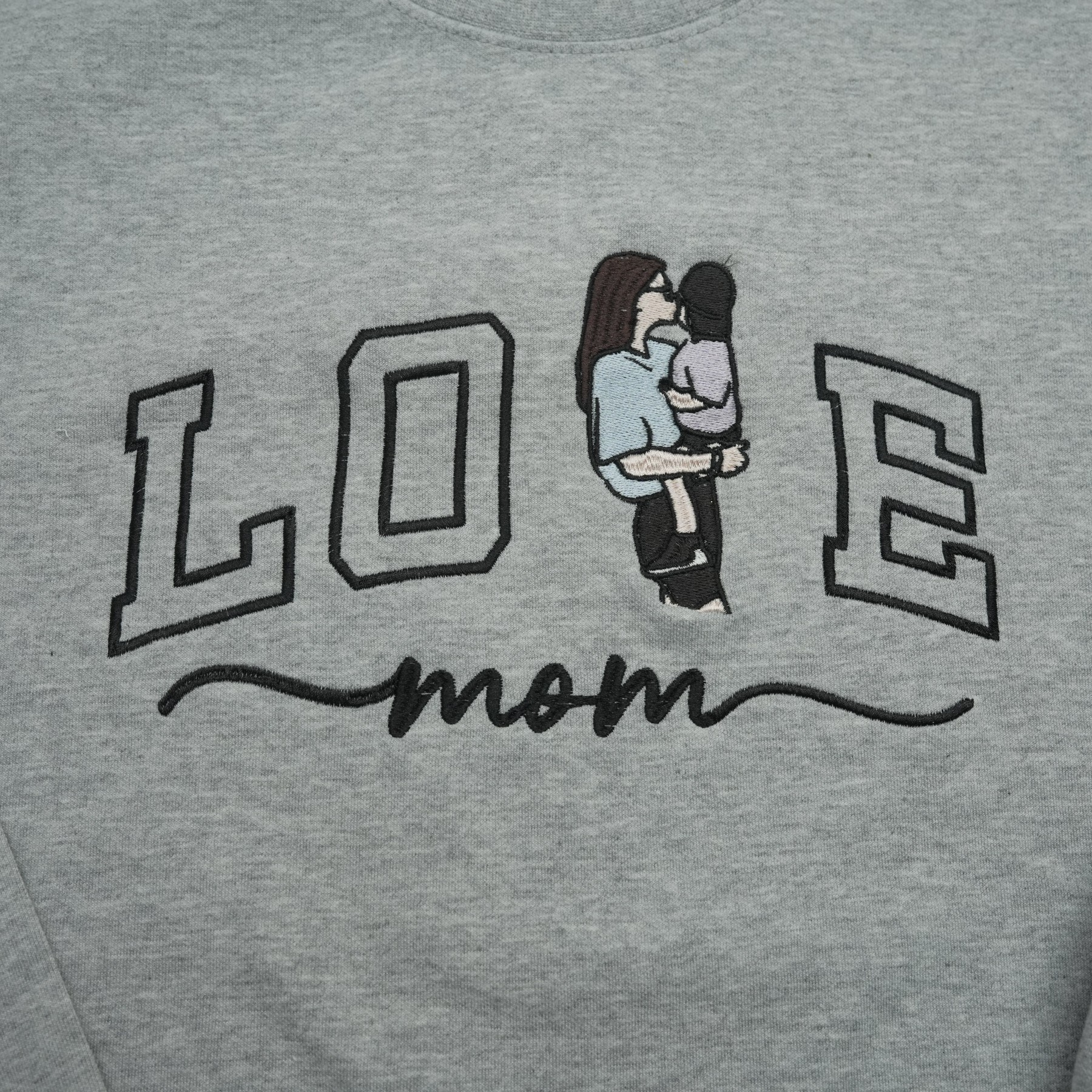 Mama Sweatshirt with Photo, Custom Embroidered Hoodie Mama and Kids Portrait