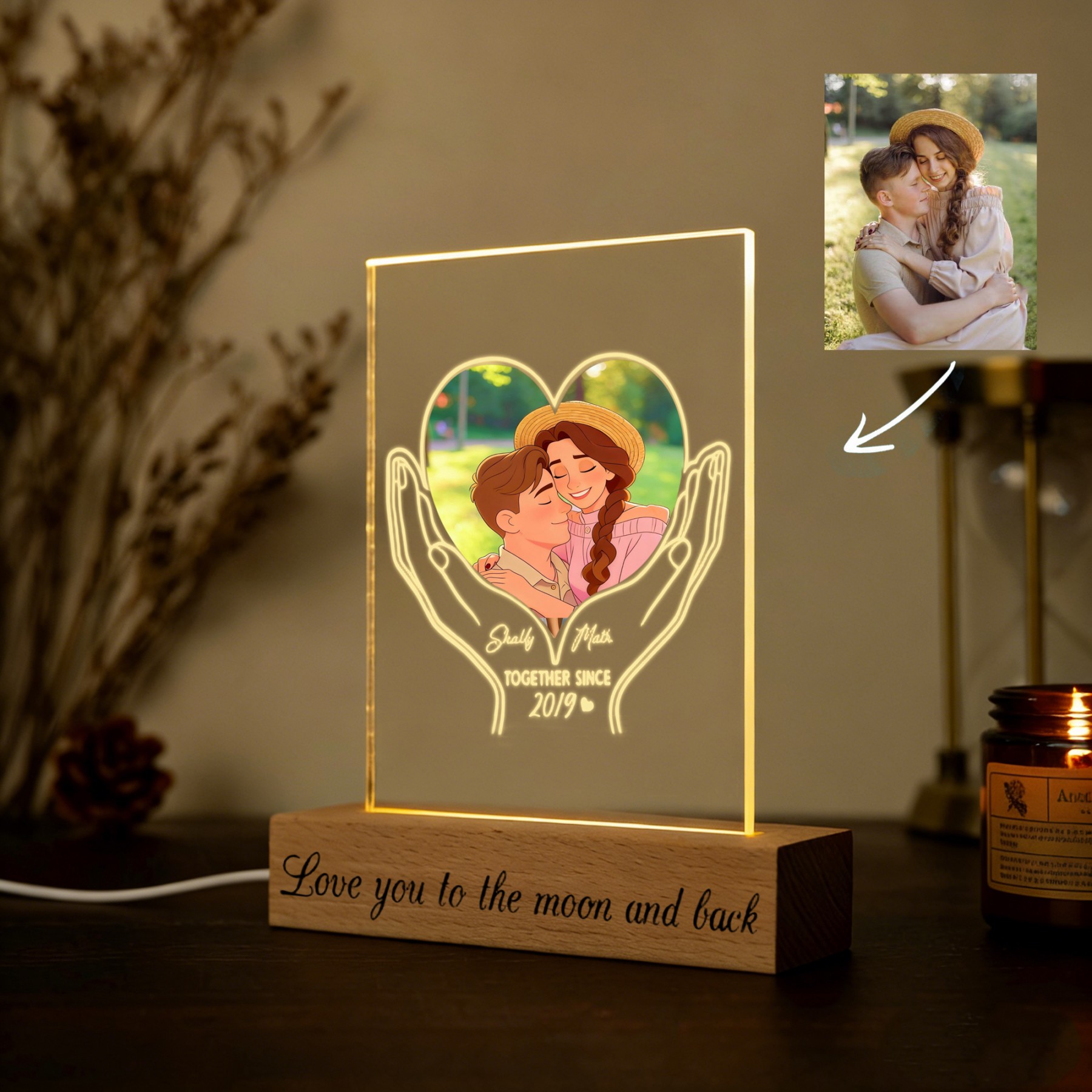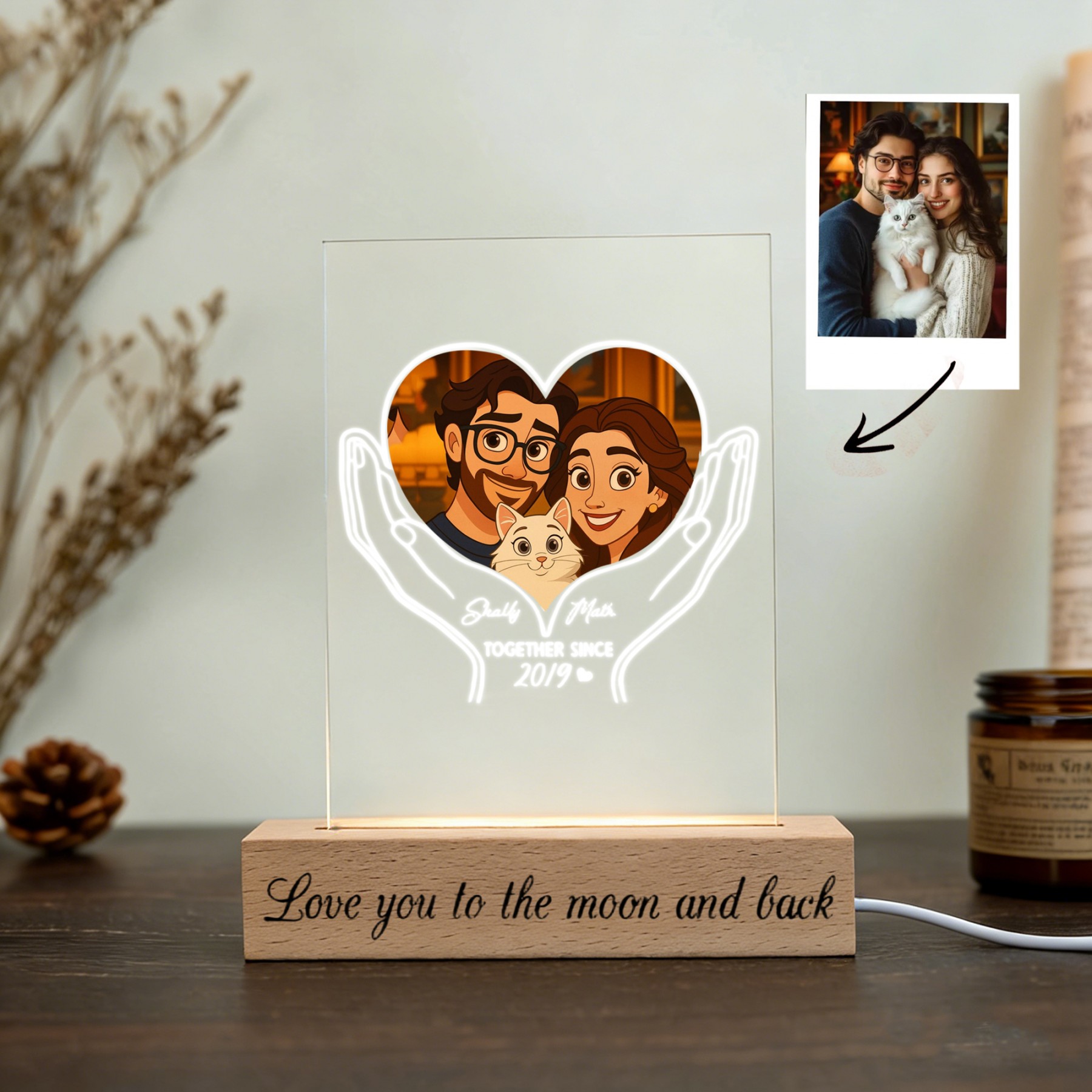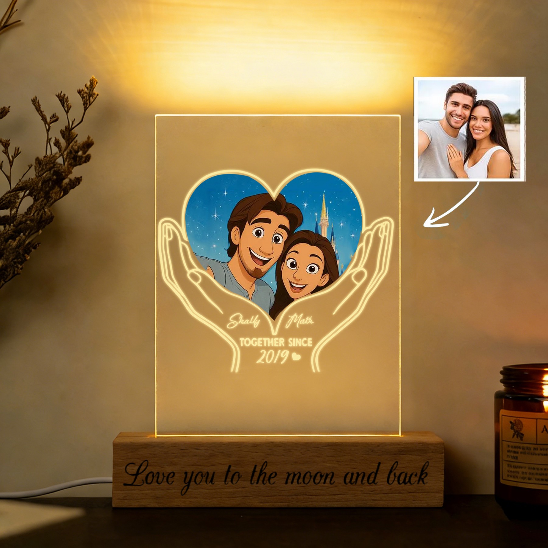Personalized Acrylic Night Light With Cartoon Photos Best Gift For Couple