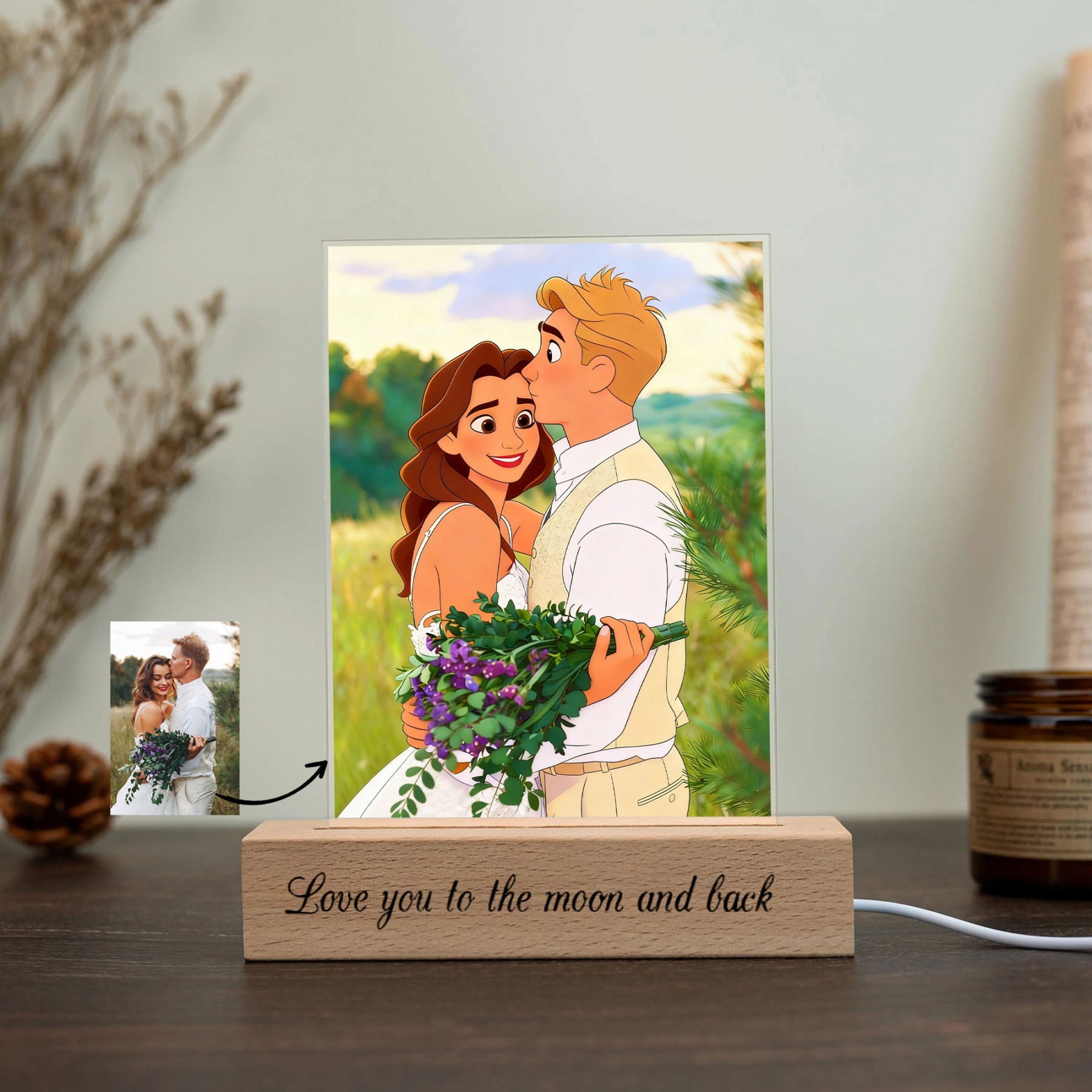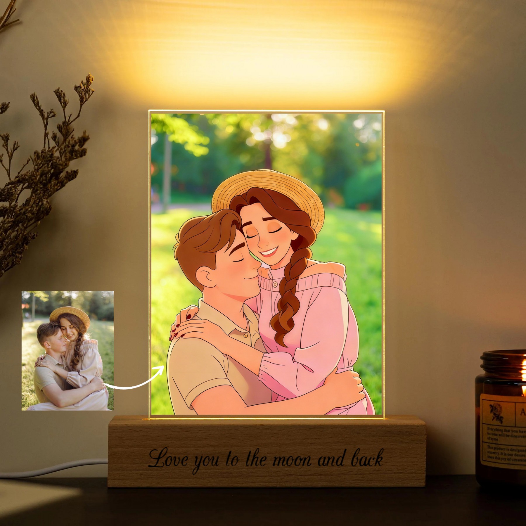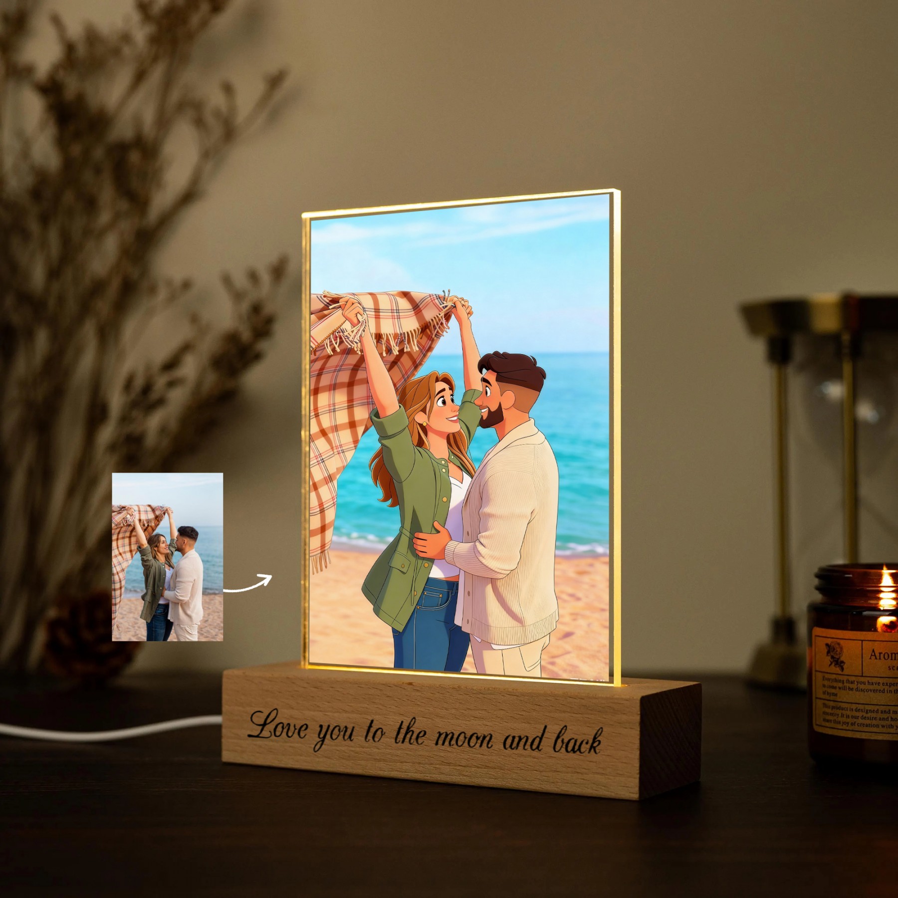Personalized Acrylic Night Light With Cartoon Photos Best Gift For Couple