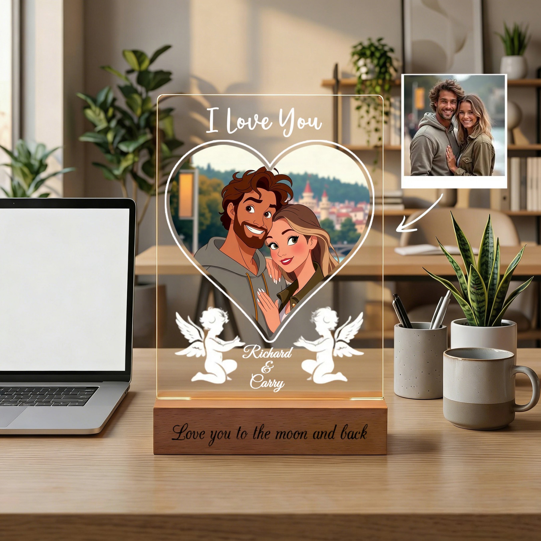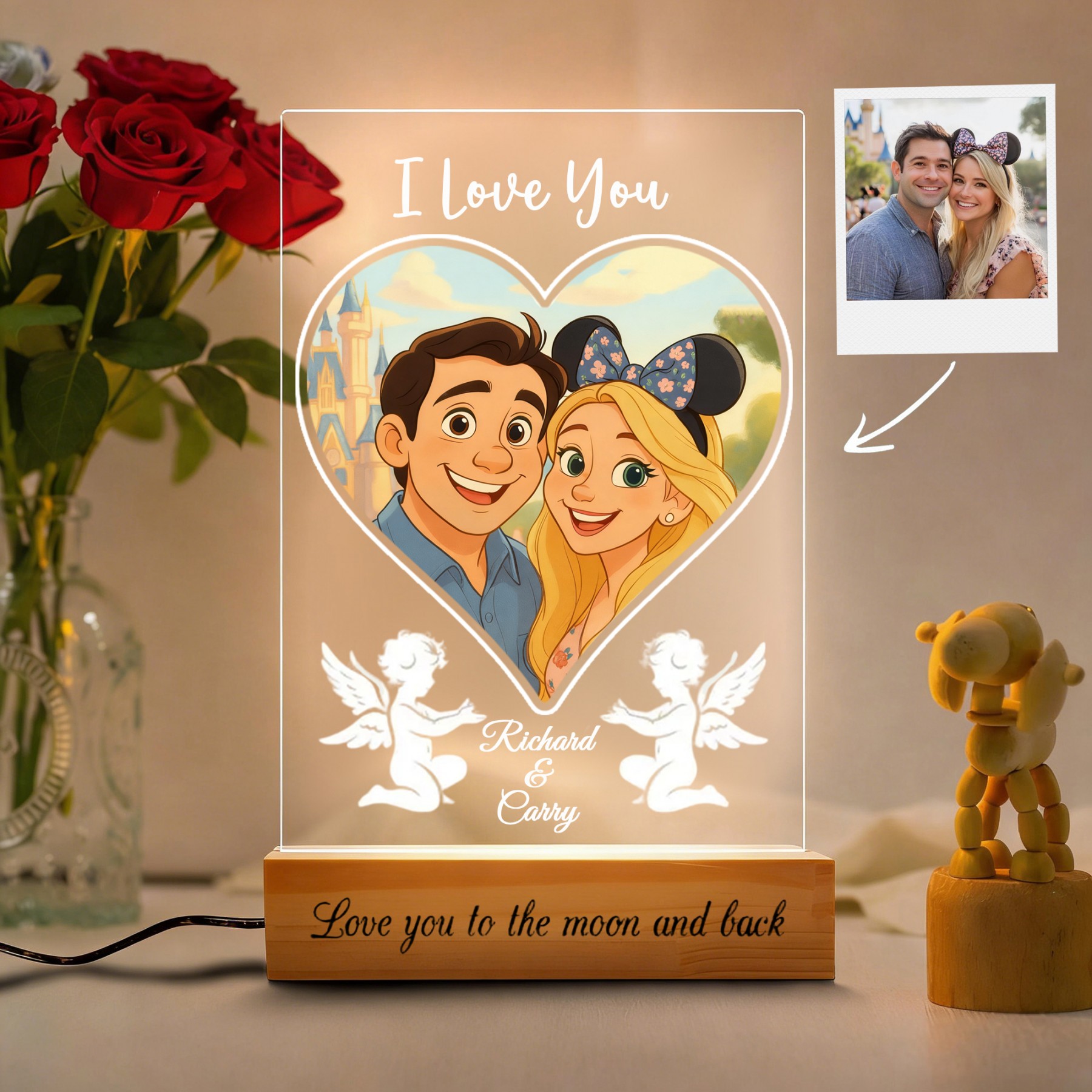 Personalized Acrylic Night Light With Cartoon Photos Best Gift For Couple