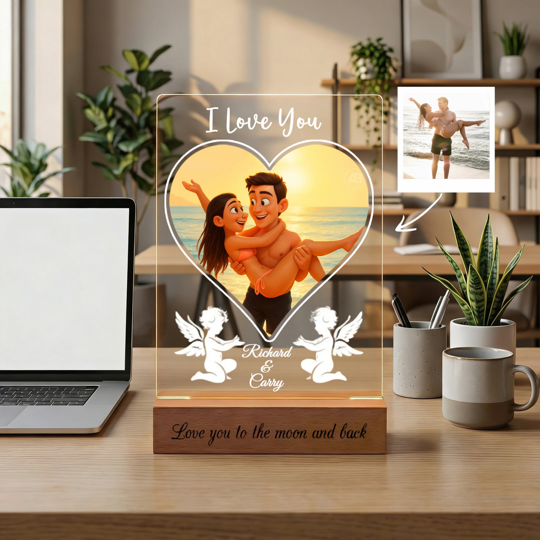 Personalized Acrylic Night Light With Cartoon Photos Best Gift For Couple