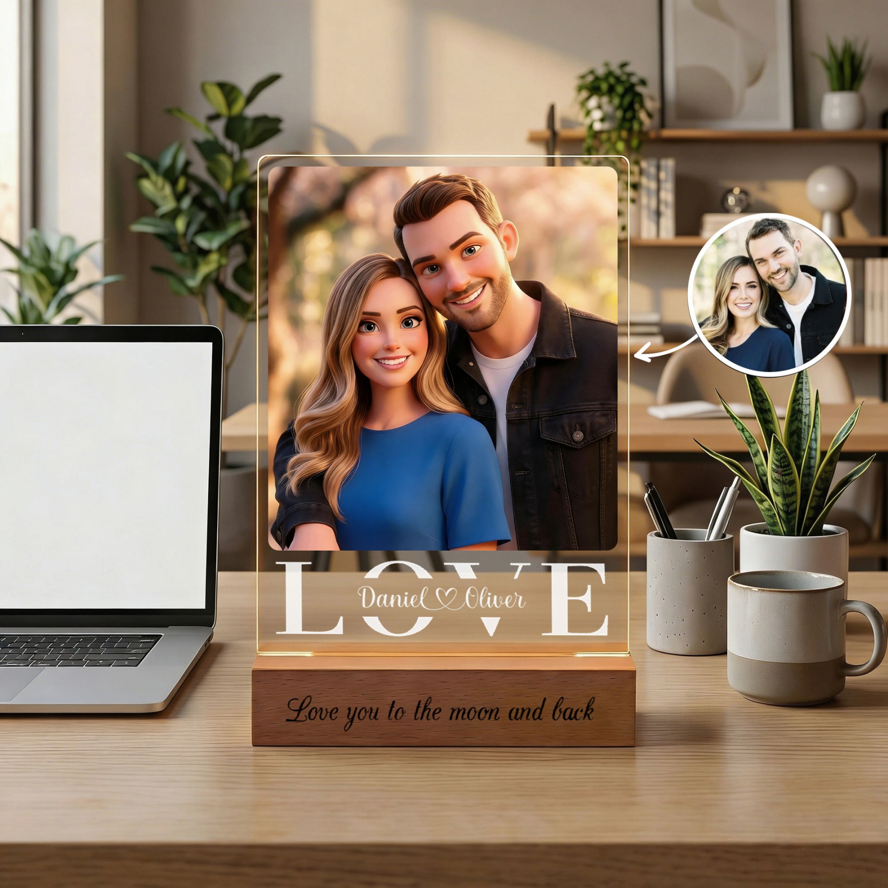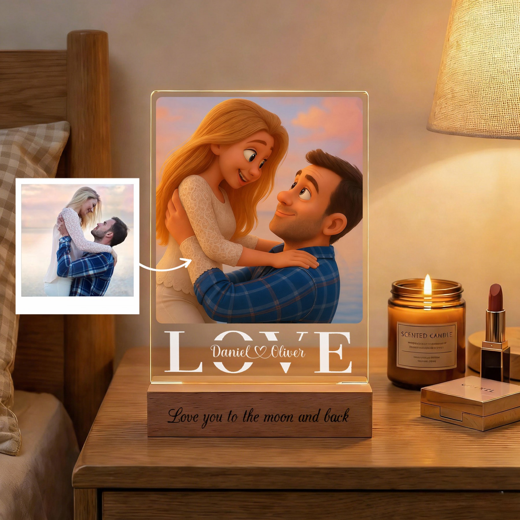 Personalized Acrylic Night Light With Cartoon Photos Best Gift For Couple