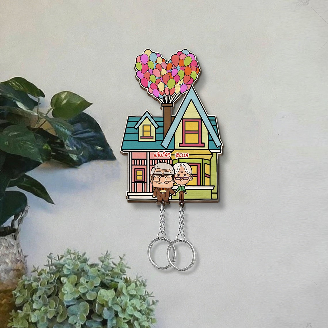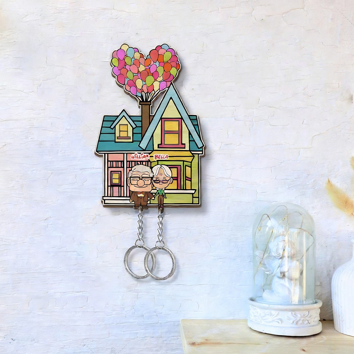 This keychain holder showcases a lovable cartoon couple illustration that represents togetherness and affection. With soft colors and playful details, it instantly brightens your entryway, bedroom, or office.