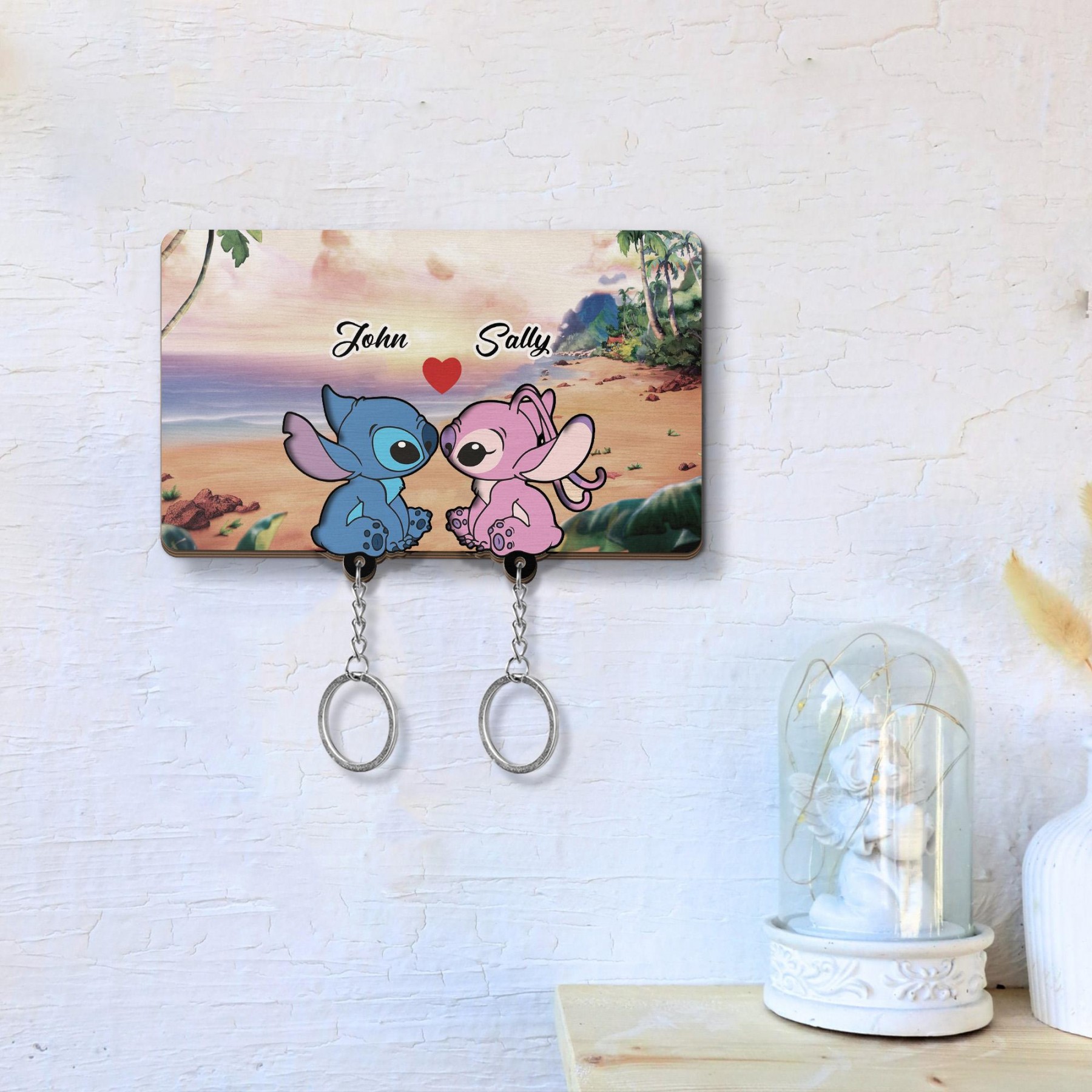 This keychain holder showcases a lovable cartoon couple illustration that represents togetherness and affection. With soft colors and playful details, it instantly brightens your entryway, bedroom, or office.