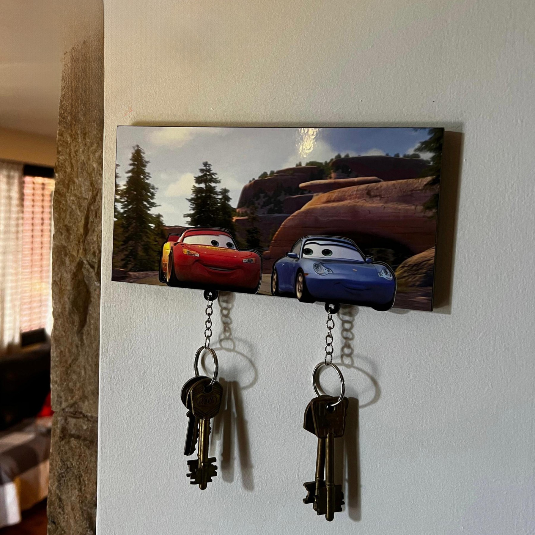 This keychain holder showcases a lovable cartoon couple illustration that represents togetherness and affection. With soft colors and playful details, it instantly brightens your entryway, bedroom, or office.