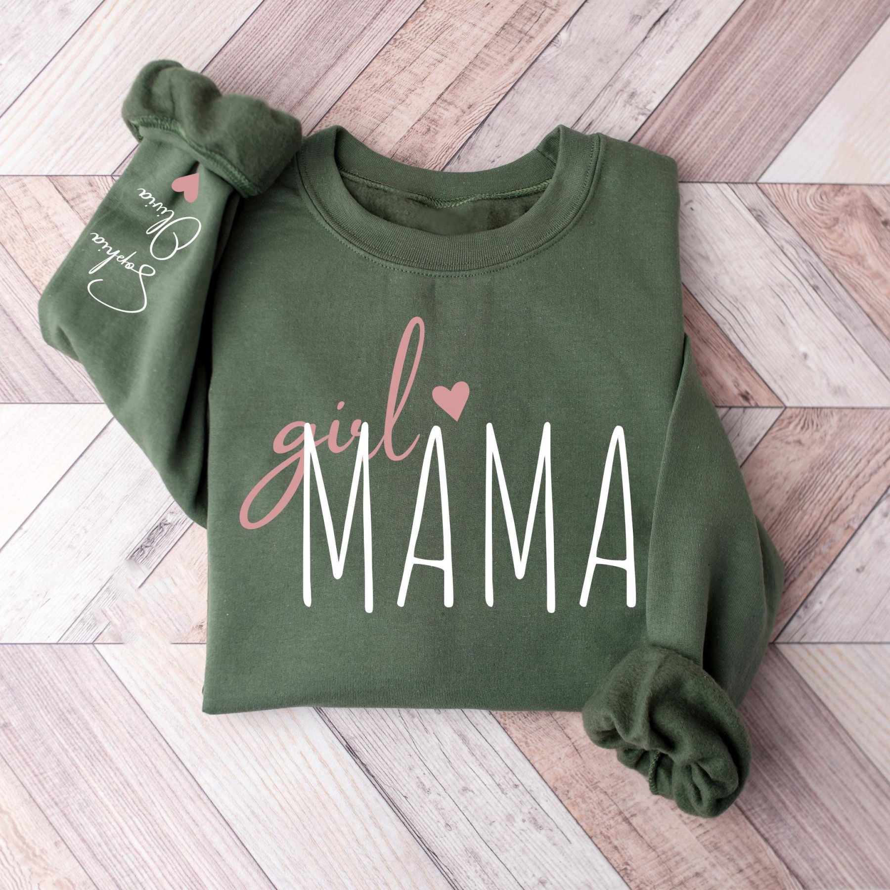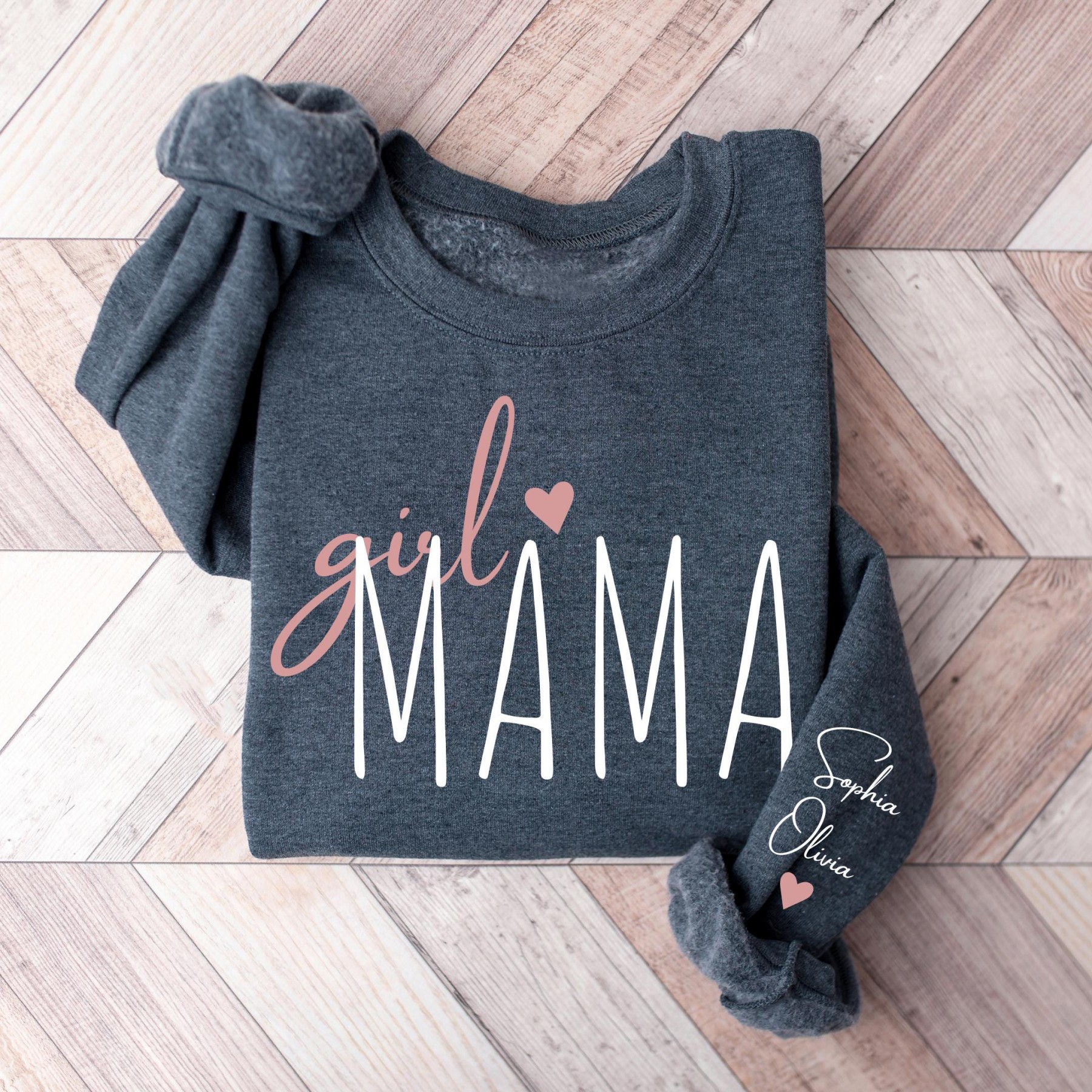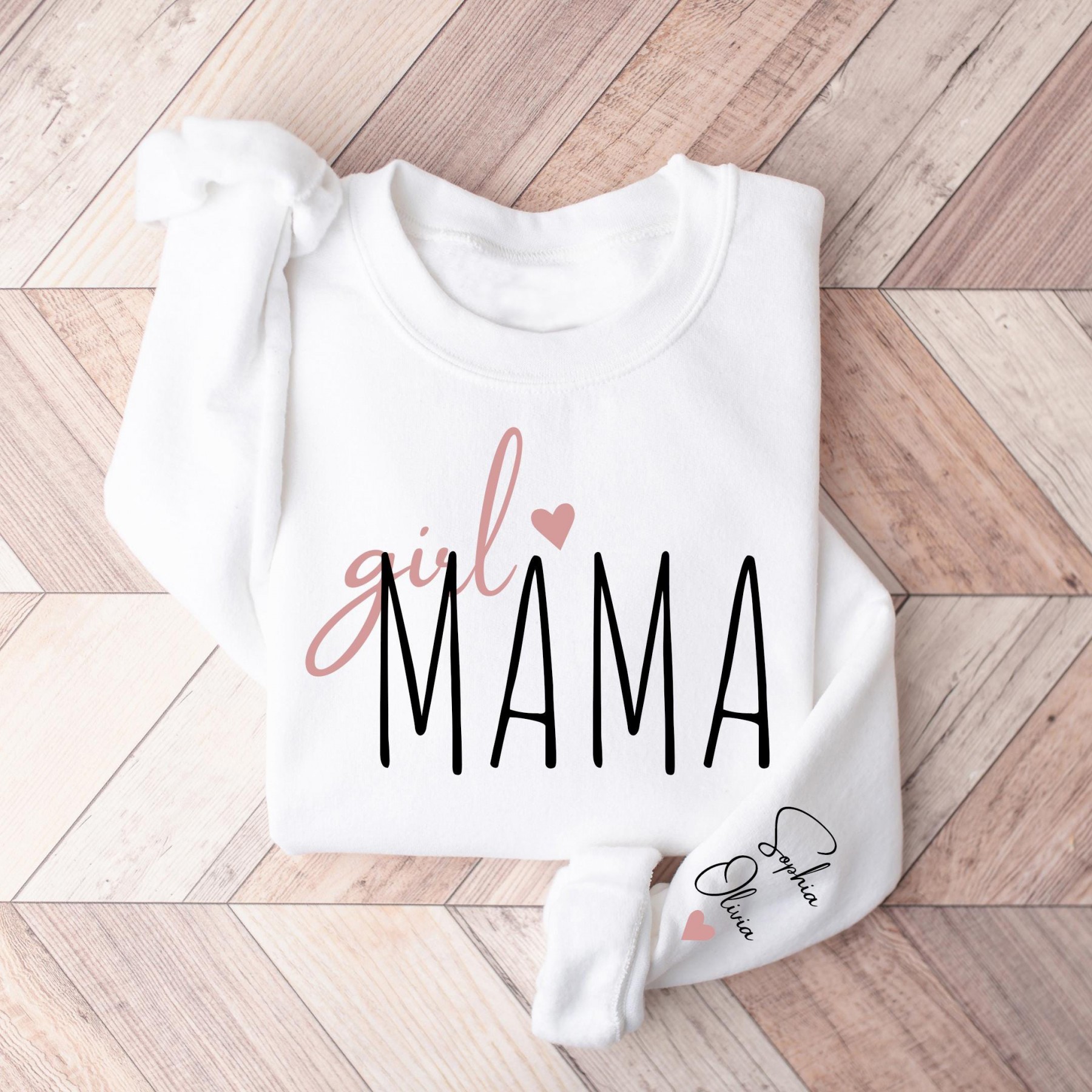 Personalized Girl Mama Sweatshirt, Grandkids names on sleeve.