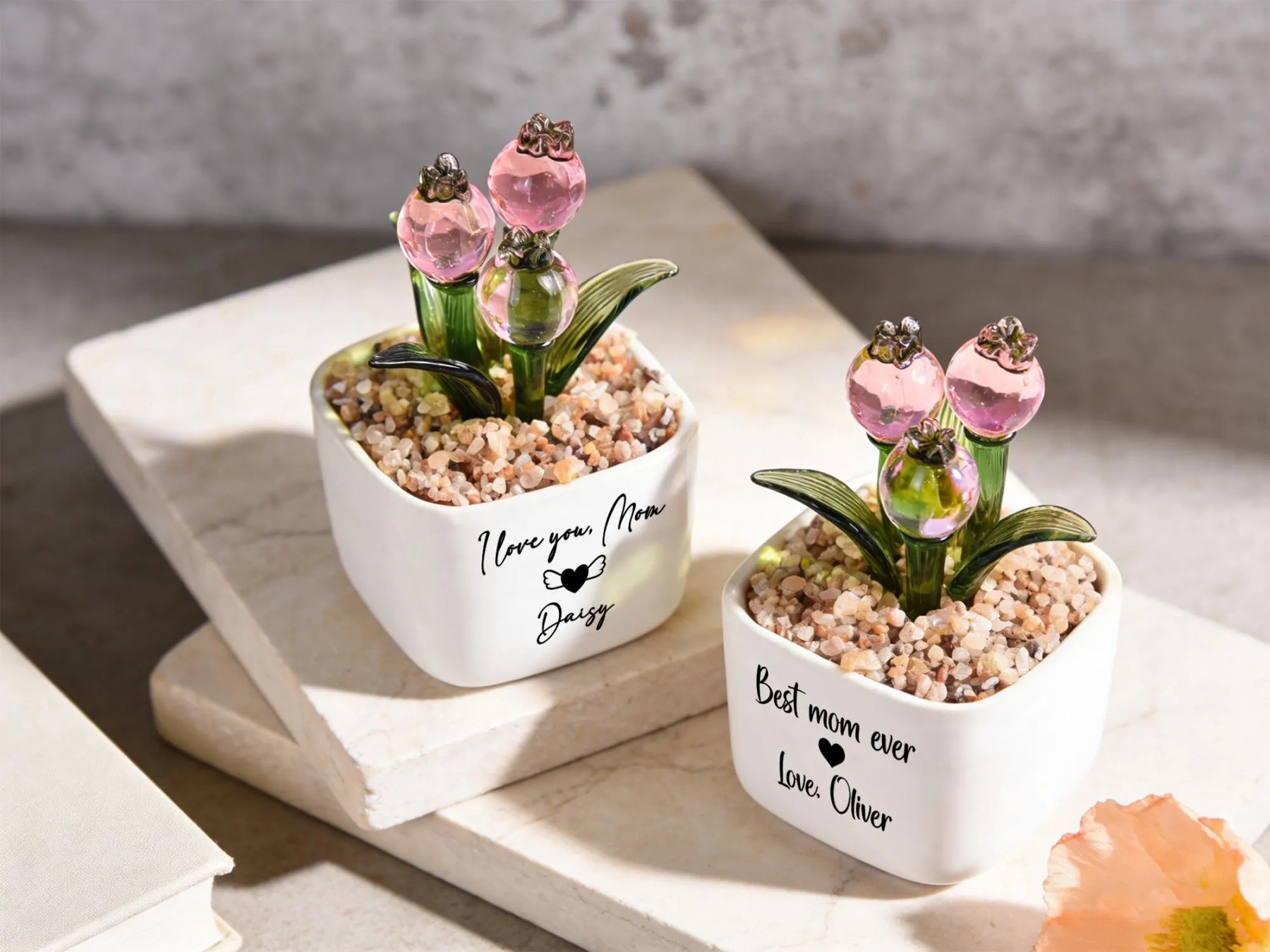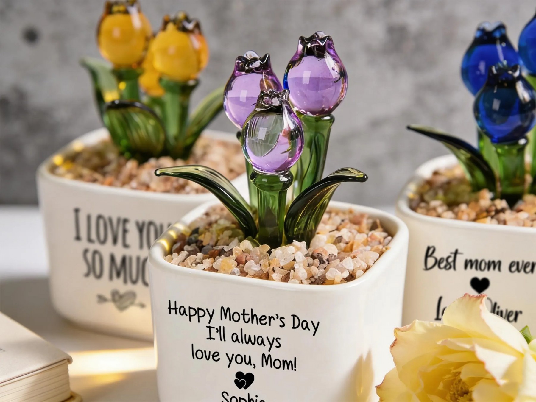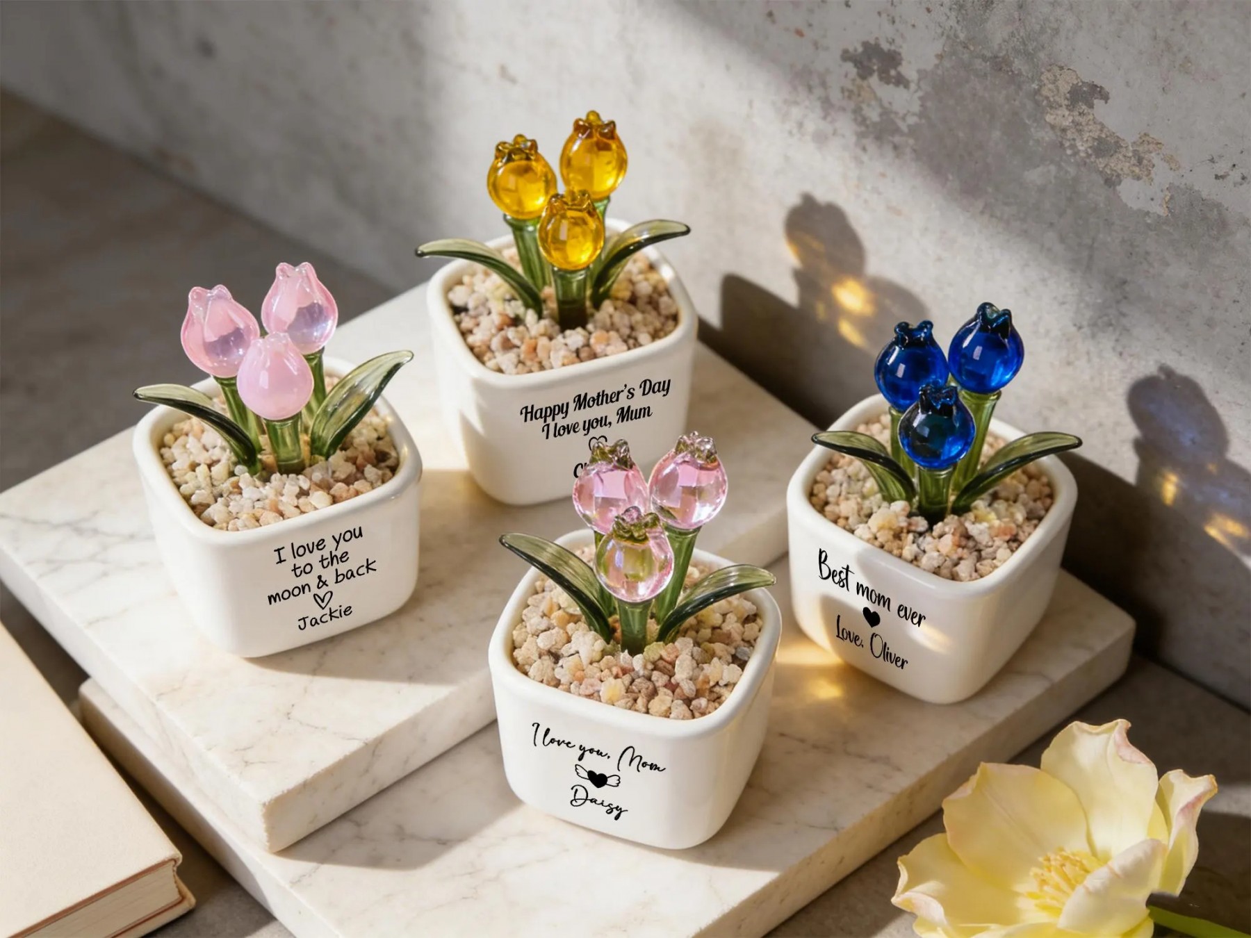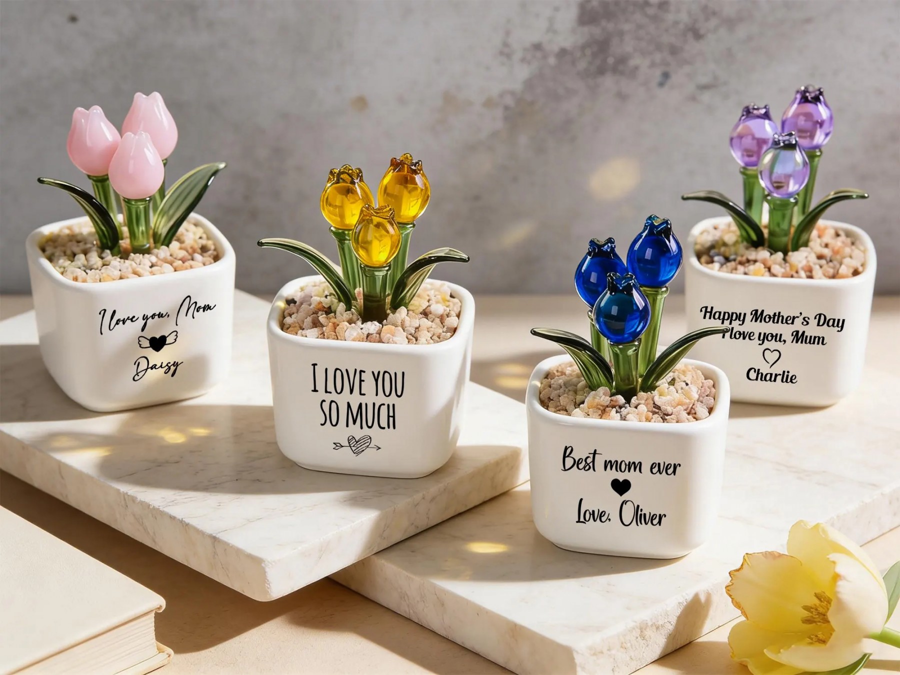 Personalized Glass Tulip Flower Pot for Mom