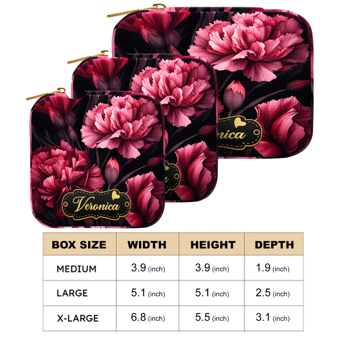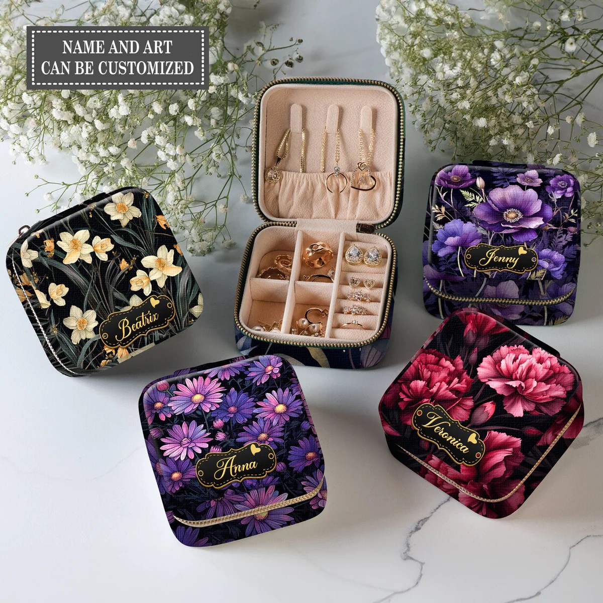 Personalized jewelry box with birth month flowers and name, gift to yourself, mother, daughter, sister.