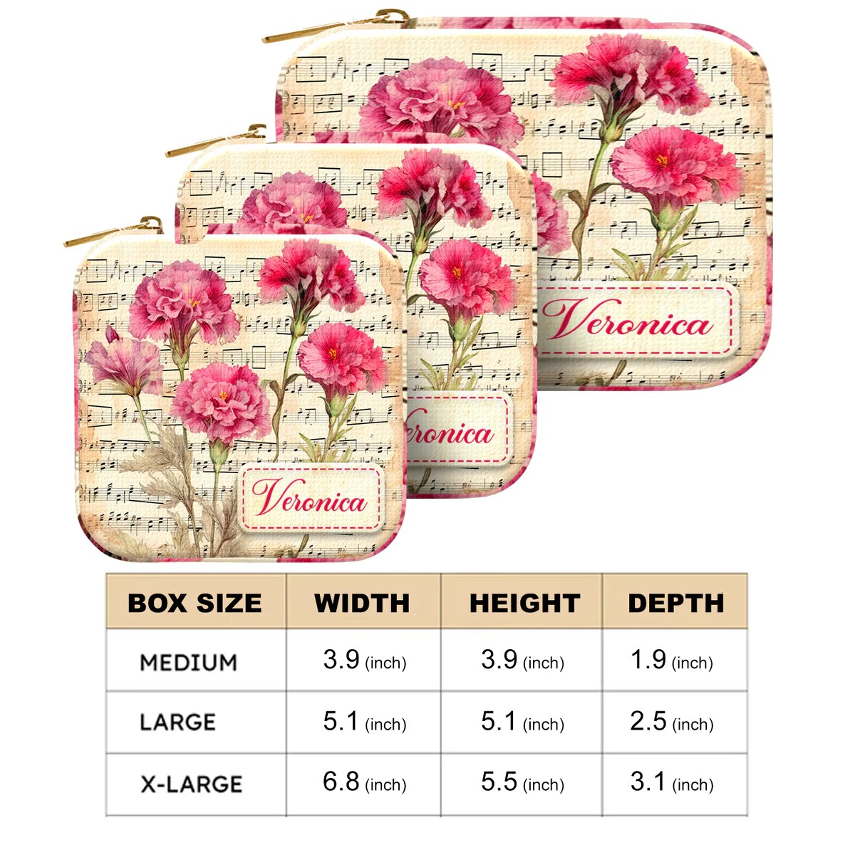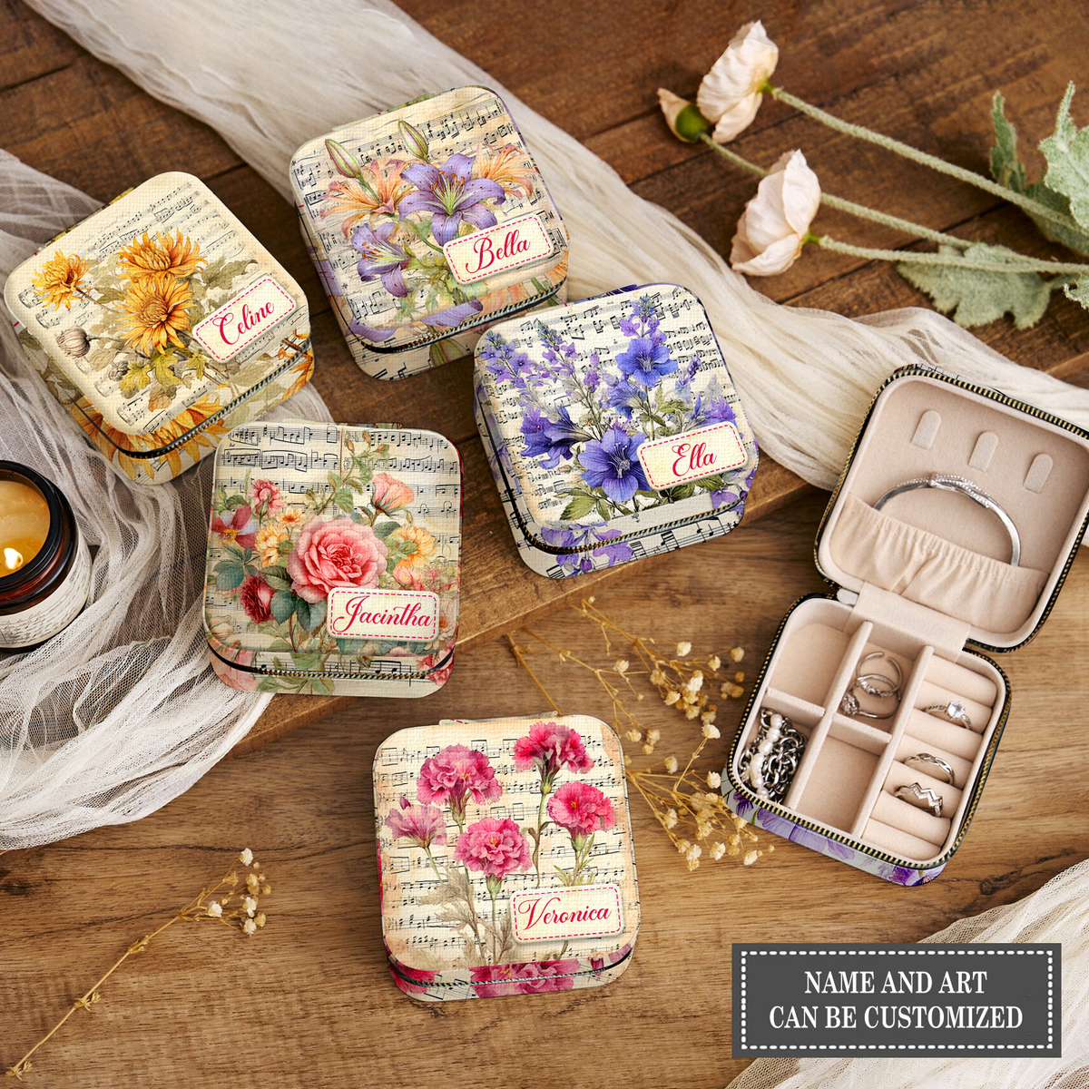 Personalized jewelry box with birth month flowers and name, gift to yourself, mother, daughter, sister.