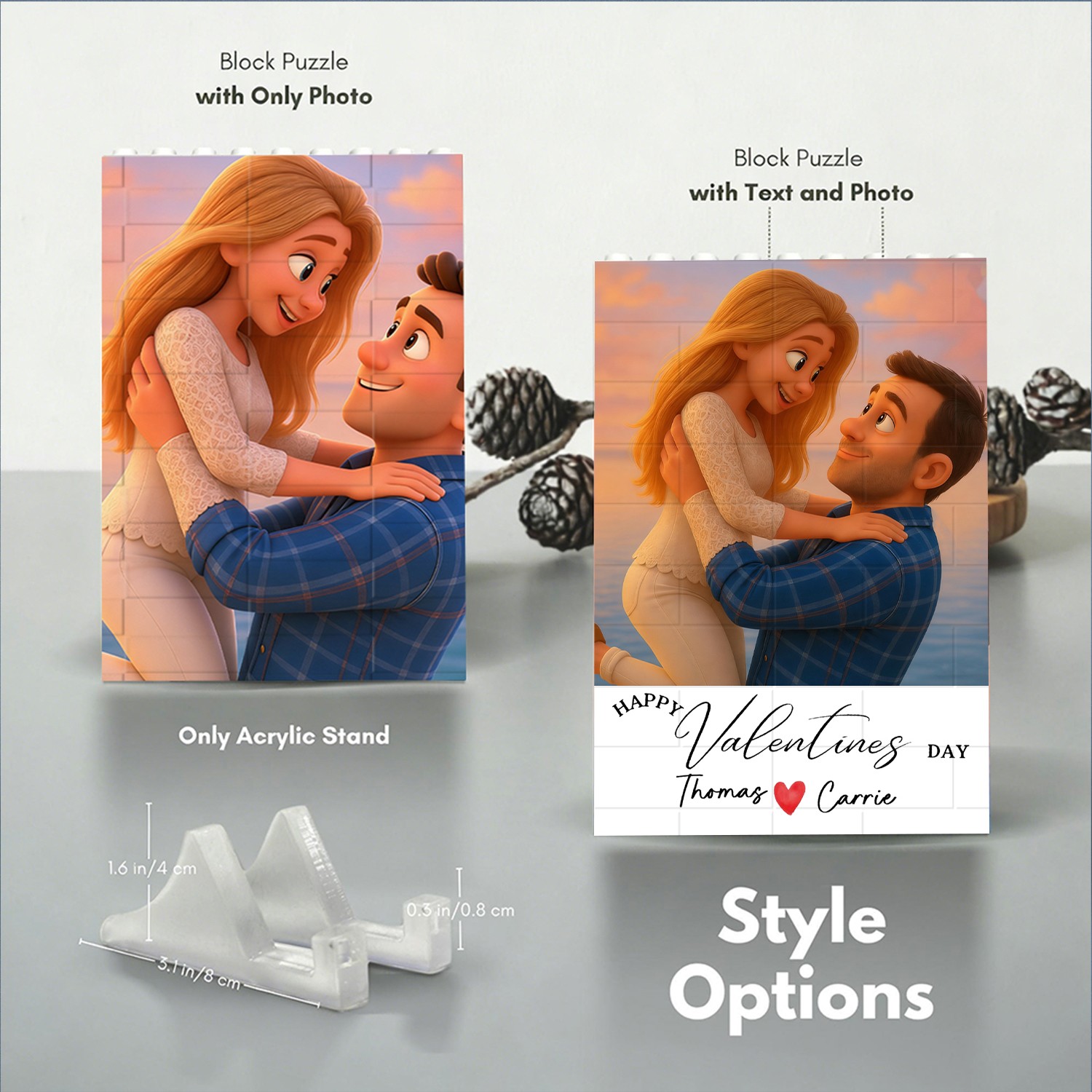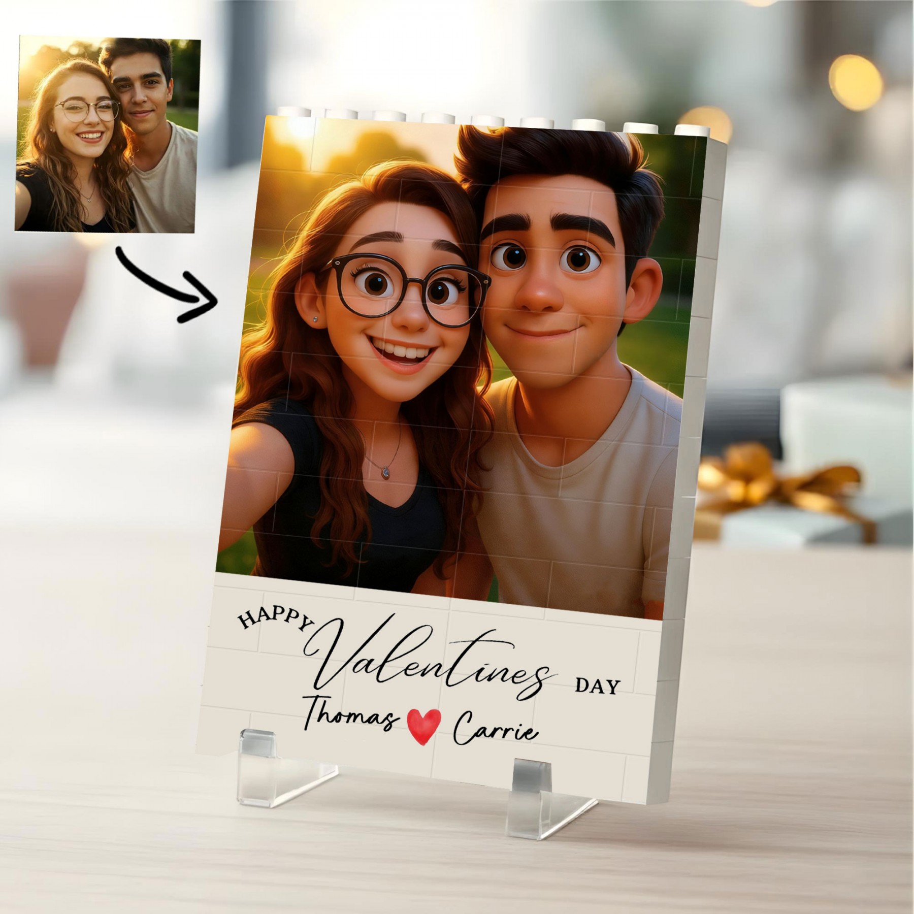 Personalized Happy Valentine's Day 3D Cartoon Portrait Puzzle Blocks