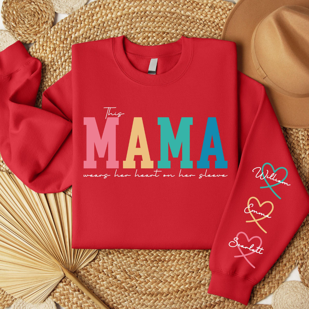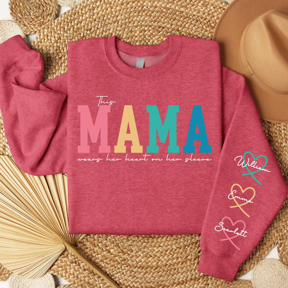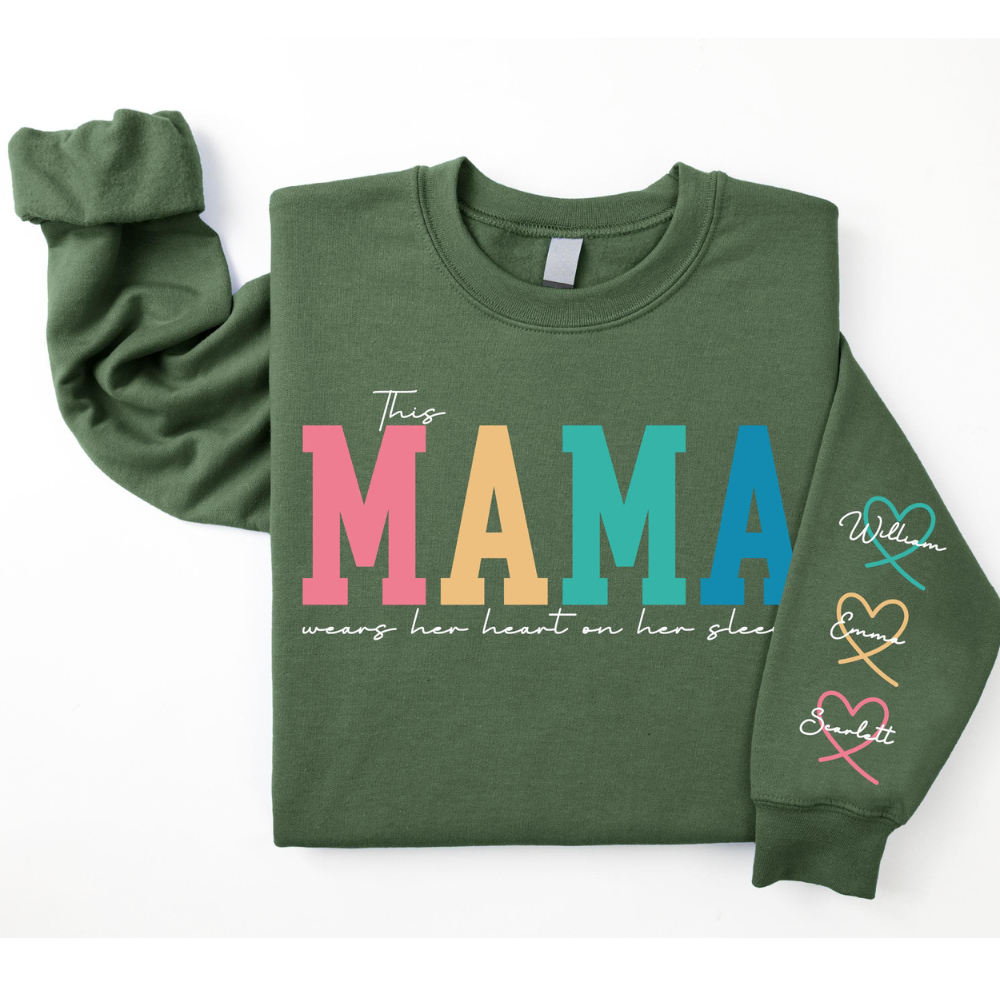 Personalized MAMA Wears Her Heart On Her Sleeve Sweatshirt
