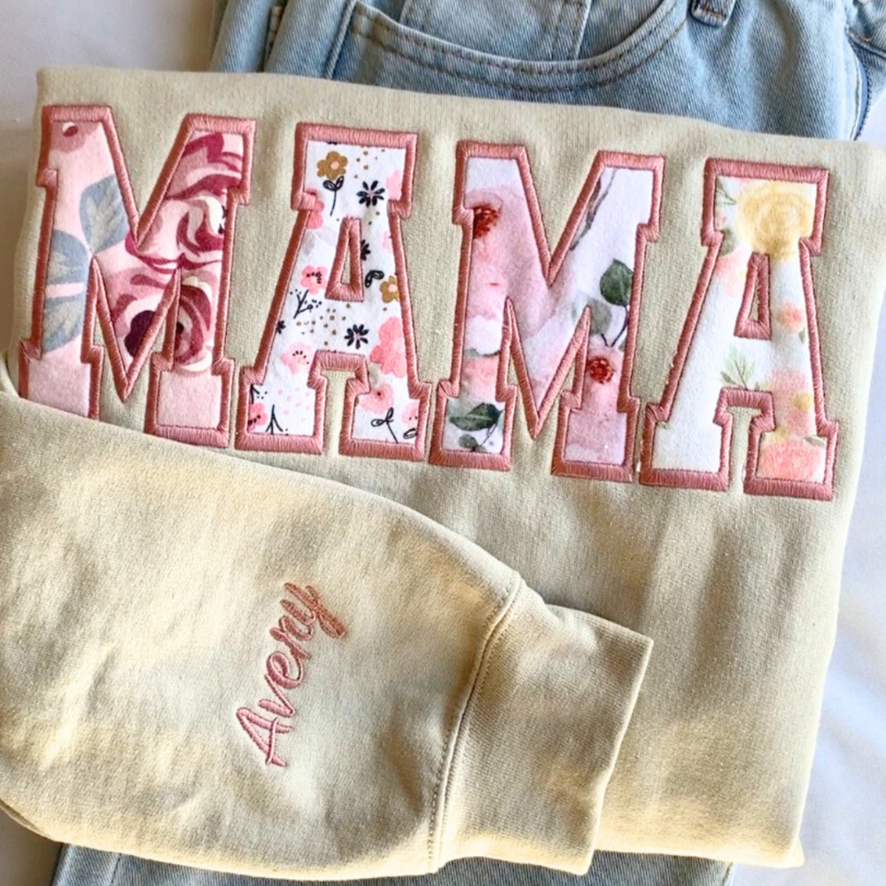 MAMA Keepsake Sweatshirt with Baby Embroidered Clothes,Custom Mother's Day Gift.