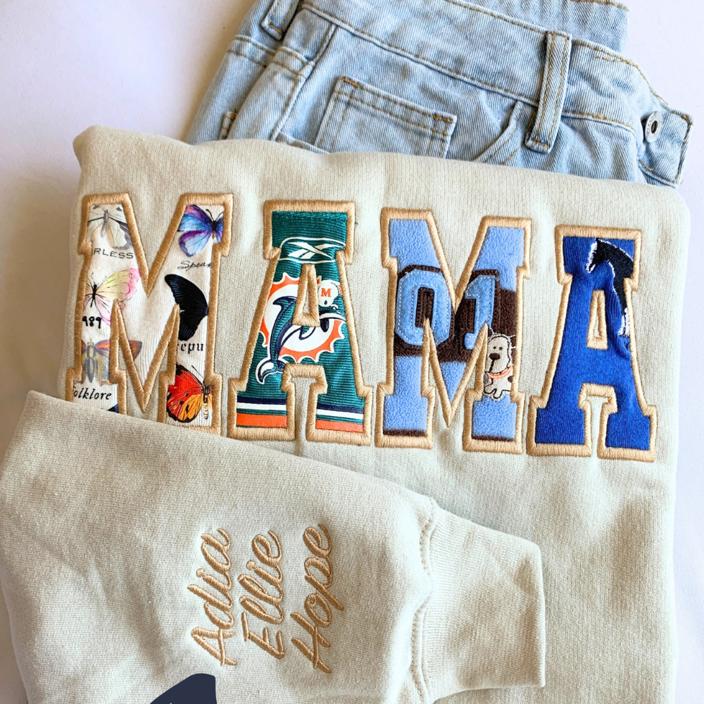 MAMA Keepsake Sweatshirt with Baby Embroidered Clothes,Custom Mother's Day Gift.