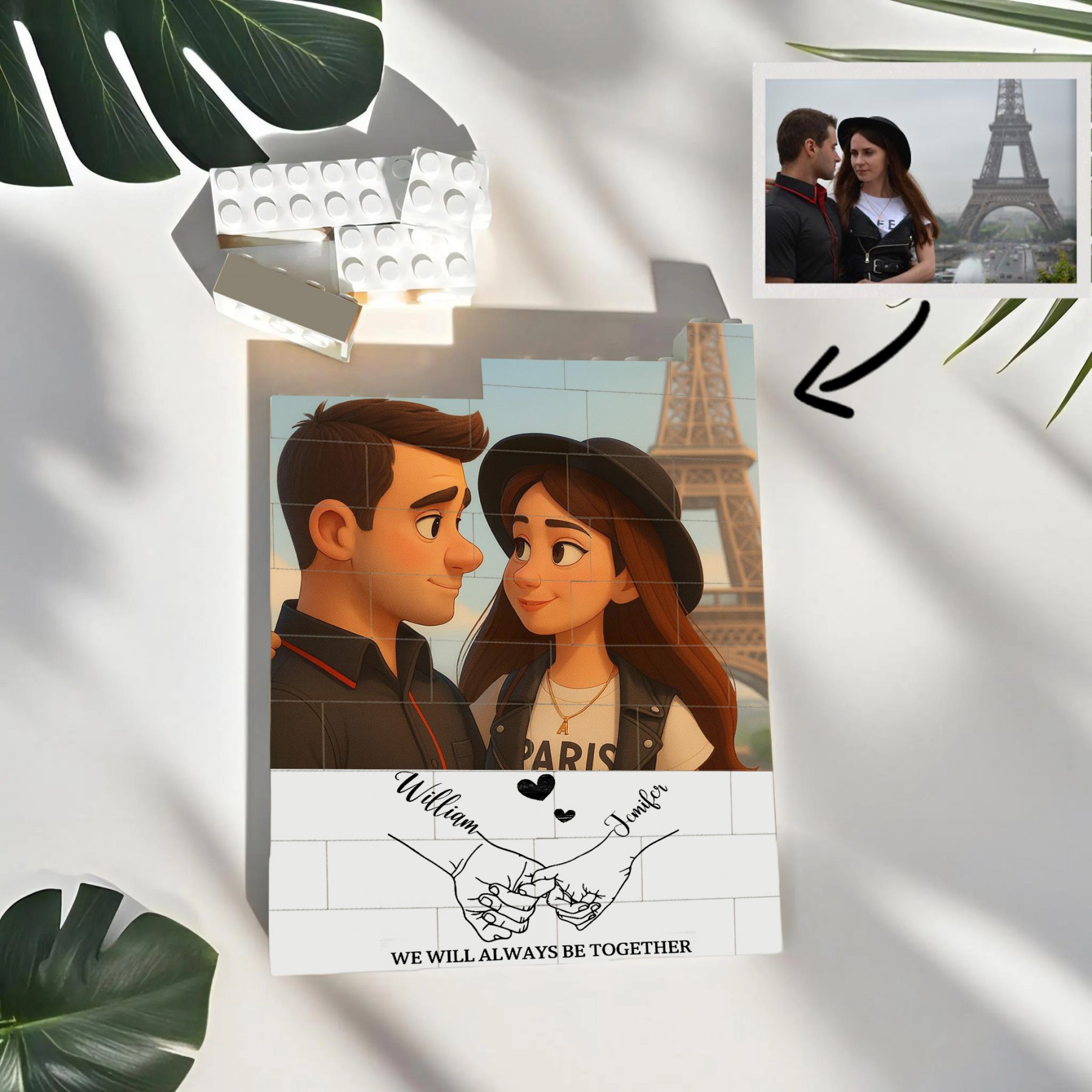 Personalized We Will Always Be Together 3D Cartoon Portrait Puzzle Blocks